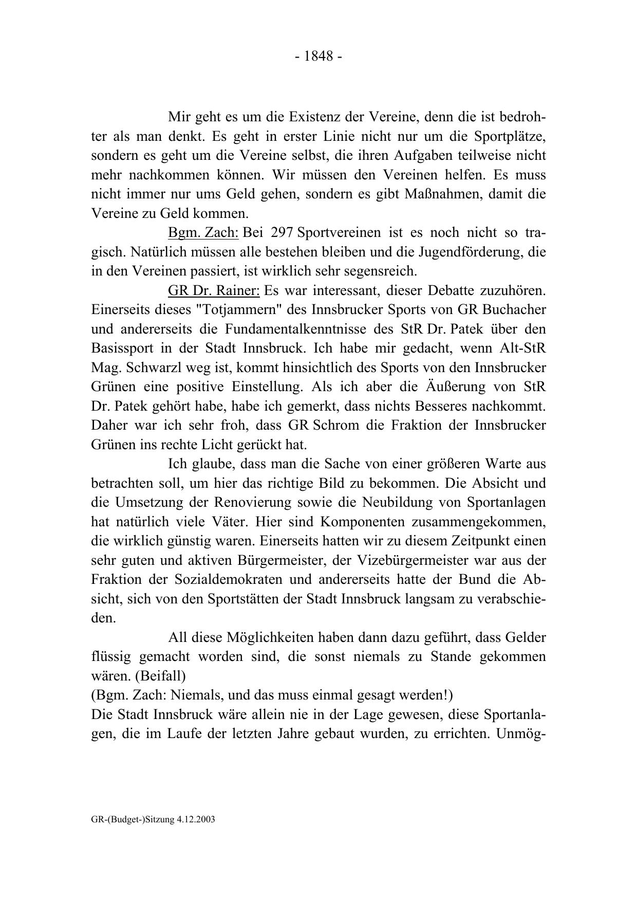 Einerseits dieses "Totjammern" des Innsbrucker Sports von GR Buchacher