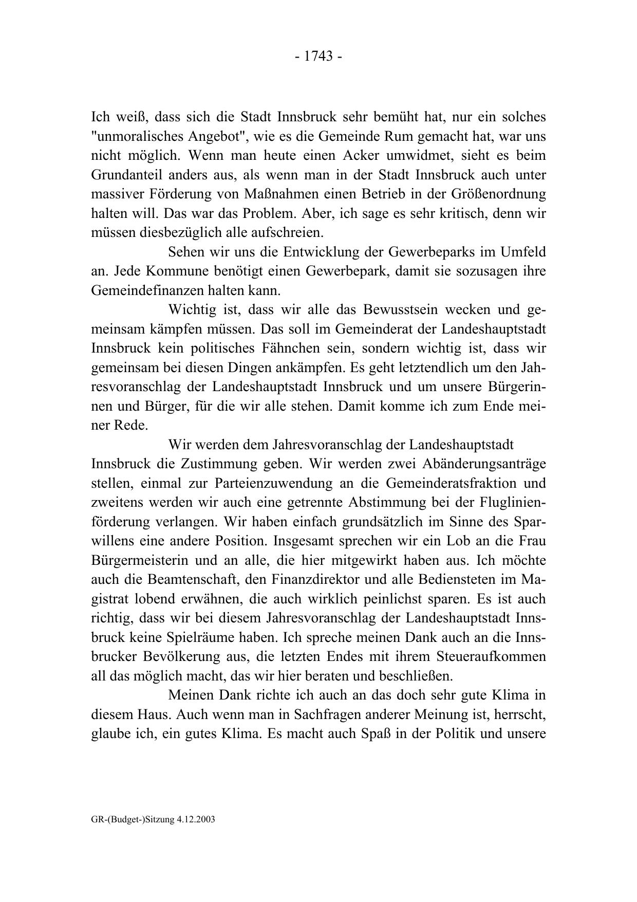 gemeinsam bei diesen Dingen ankämpfen. Es geht letztendlich um den Jahresvoranschlag der Landeshauptstadt Innsbruck und um unsere Bürgerinnen und Bürger, für die wir alle stehen. Damit komme ich zum Ende meiner Rede.