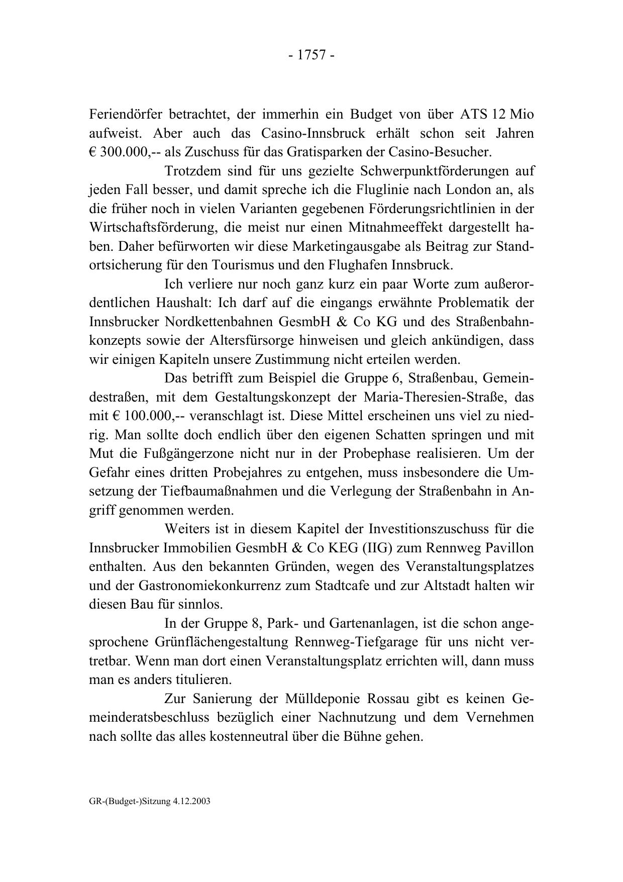 Wirtschaftsförderung, die meist nur einen Mitnahmeeffekt dargestellt haben. Daher befürworten wir diese Marketingausgabe als Beitrag zur Standortsicherung für den Tourismus und den Flughafen Innsbruck.