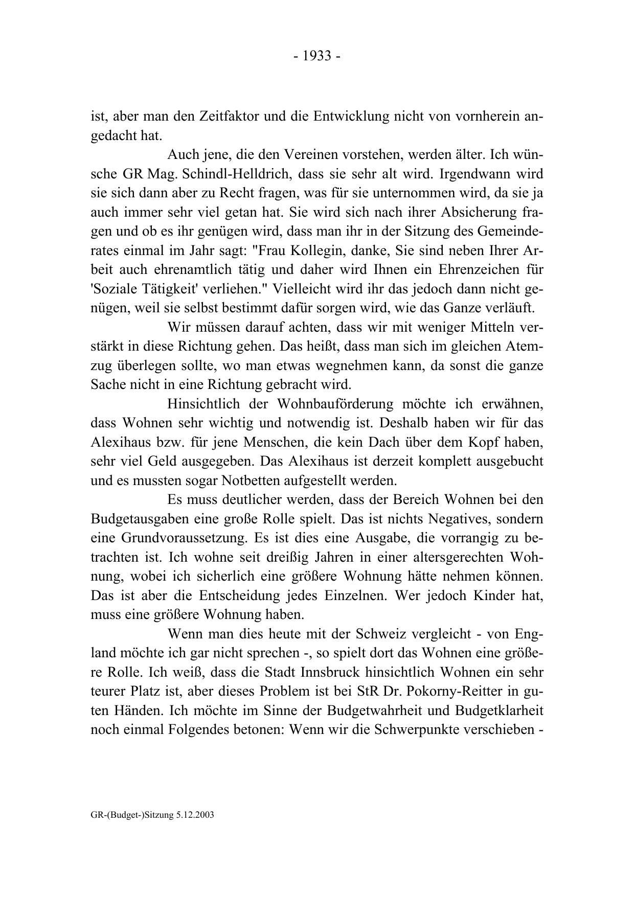 Wenn man dies heute mit der Schweiz vergleicht - von England möchte ich gar nicht sprechen -, so spielt dort das Wohnen eine größere Rolle. Ich weiß, dass die Stadt Innsbruck hinsichtlich Wohnen ein sehr