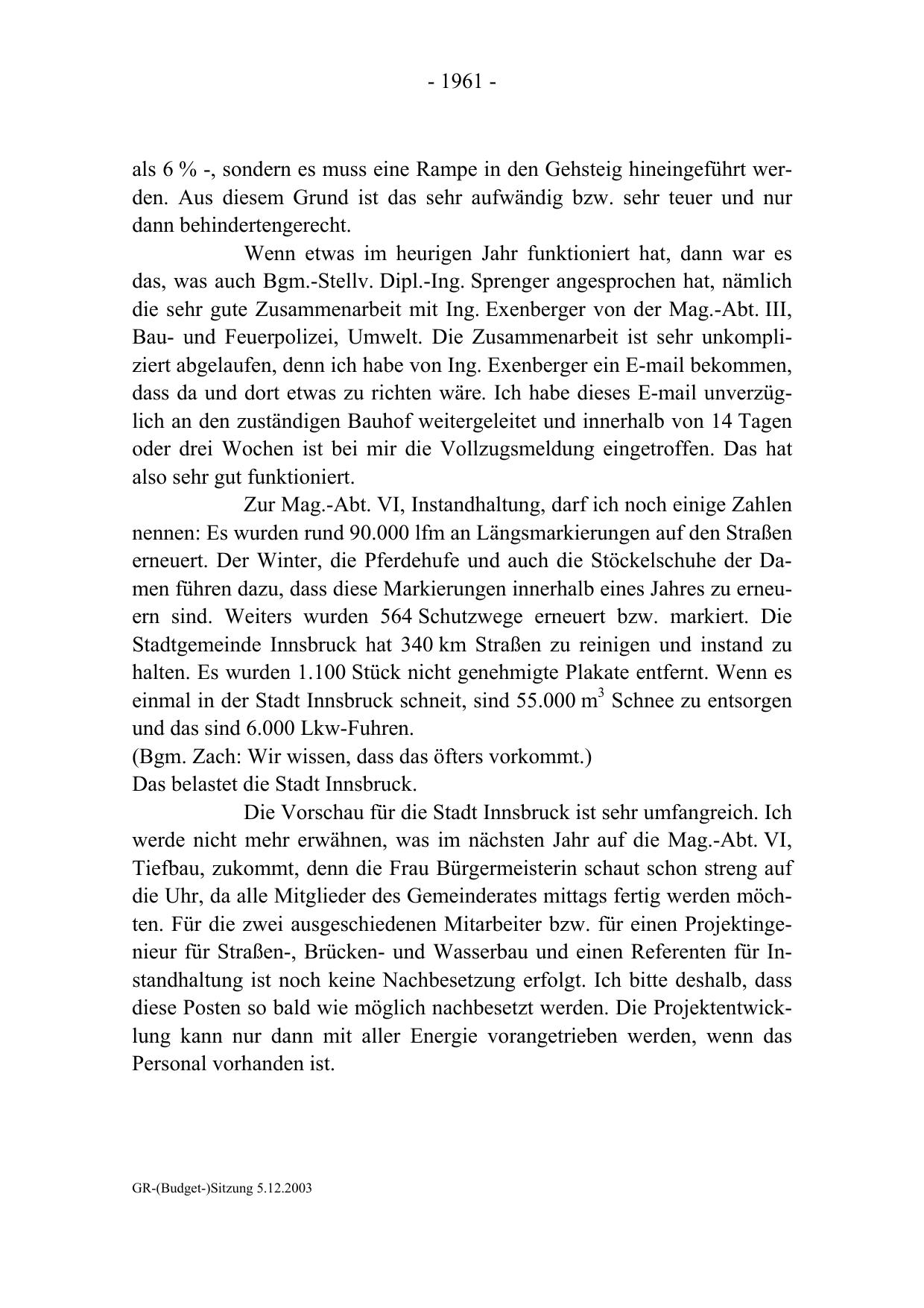 werde nicht mehr erwähnen, was im nächsten Jahr auf die Mag.-Abt. VI,
