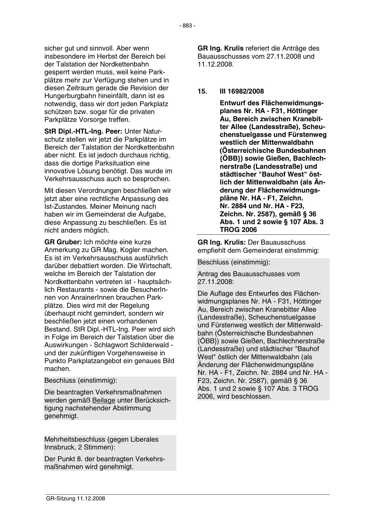 StR Dipl.-HTL-Ing. Peer: Unter Naturschutz stellen wir jetzt die Parkplätze im