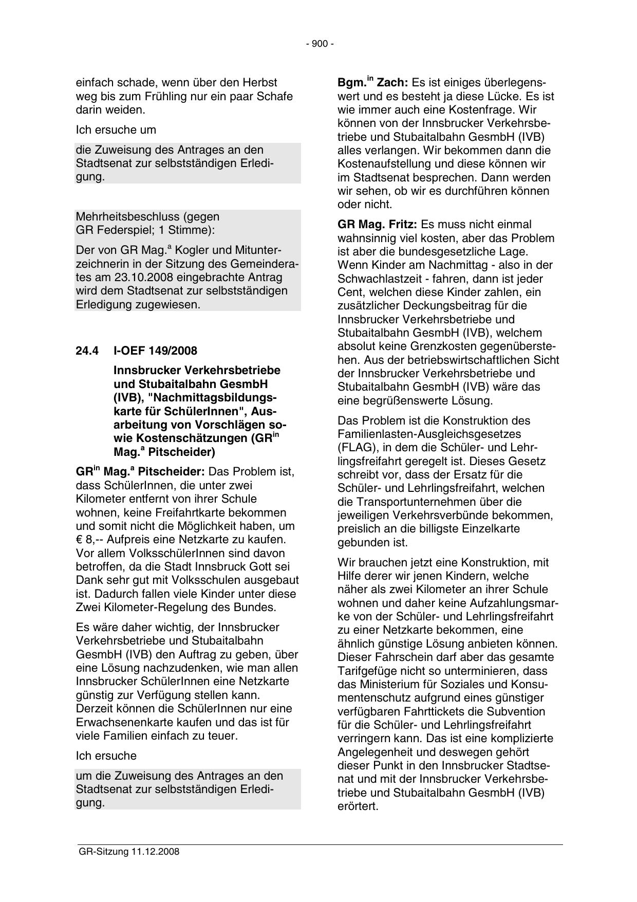 Der von GR Mag.a Kogler und Mitunterzeichnerin in der Sitzung des Gemeinderates am 23.10.2008 eingebrachte Antrag