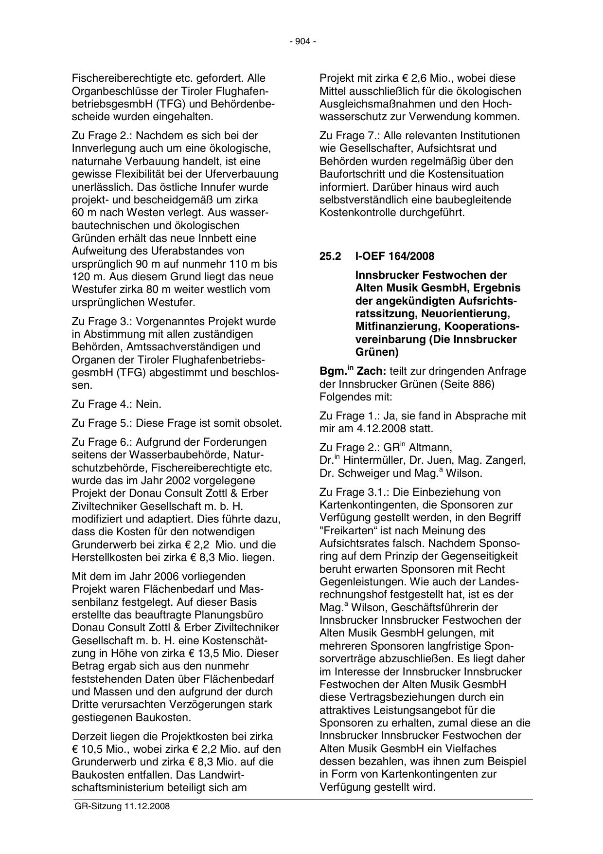 Organbeschlüsse der Tiroler FlughafenbetriebsgesmbH (TFG) und Behördenbescheide wurden eingehalten.