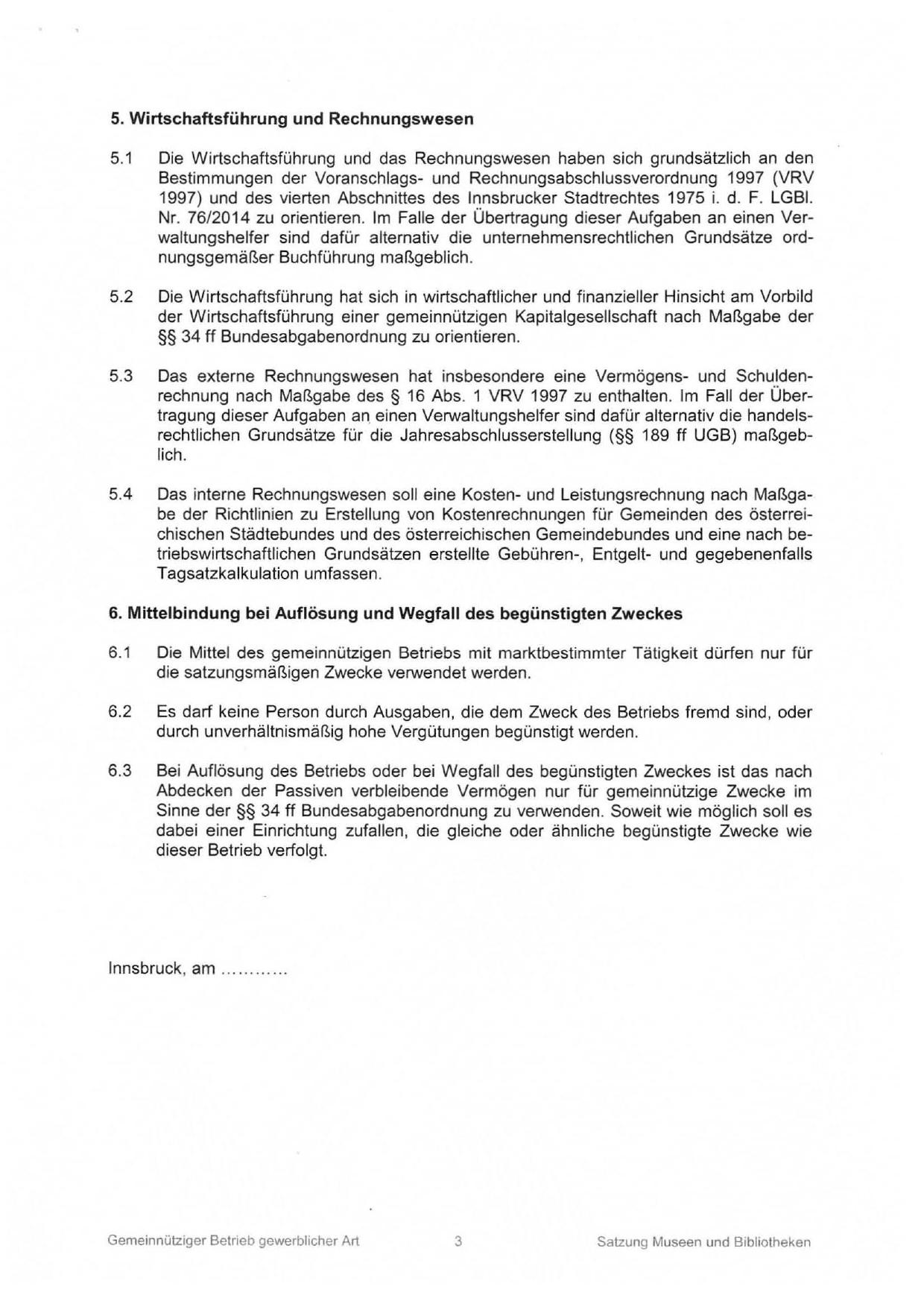 1997) und des vierten Abschnittes des Innsbrucker Stadtrechtes 1975 i. d. F. LGBI.