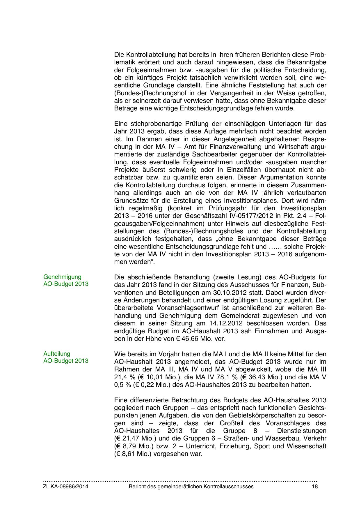 0,5 % (€ 0,22 Mio.) des AO-Haushaltes 2013 zu bearbeiten hatten.