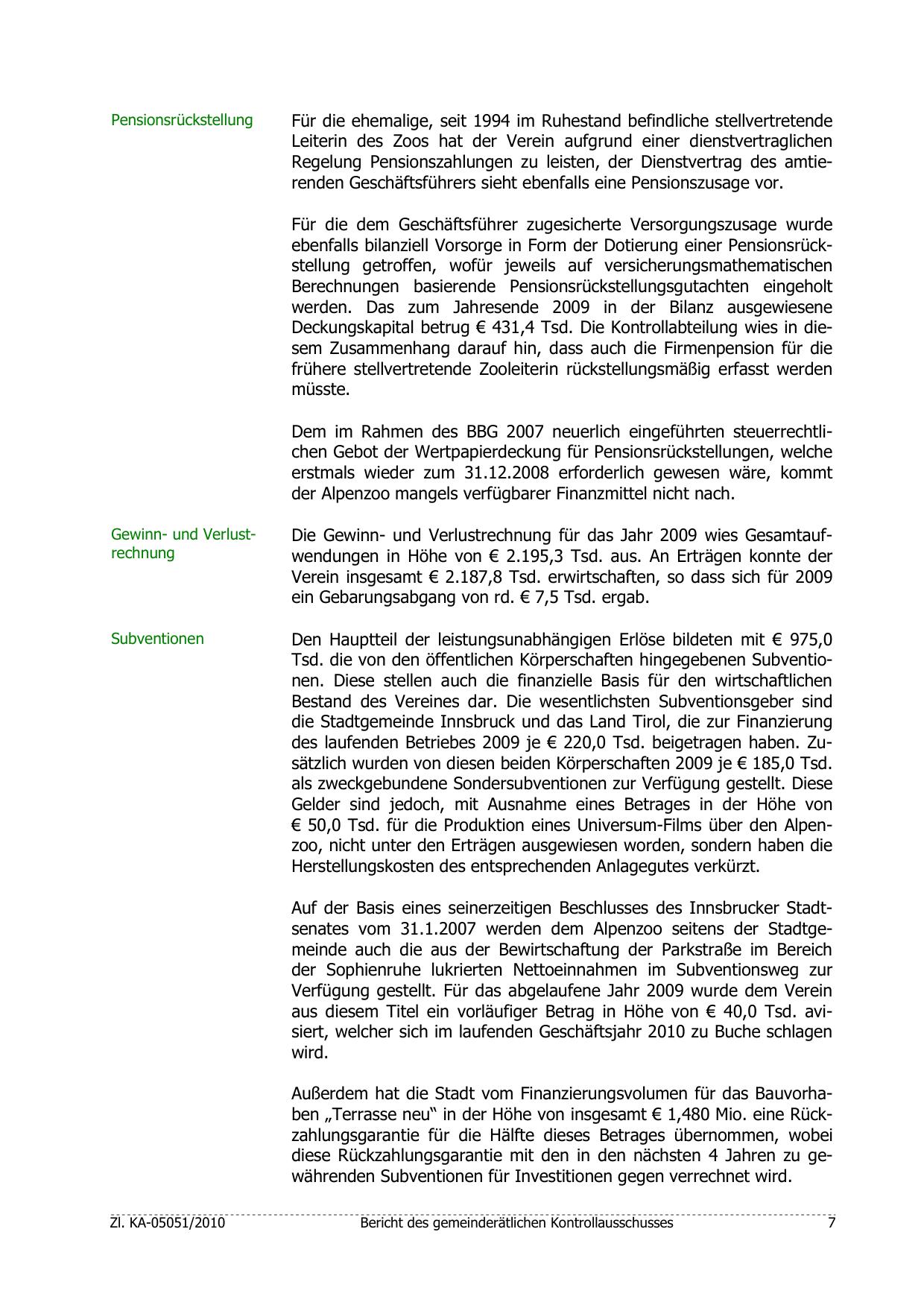 des laufenden Betriebes 2009 je € 220,0 Tsd. beigetragen haben. Zusätzlich wurden von diesen beiden Körperschaften 2009 je € 185,0 Tsd.