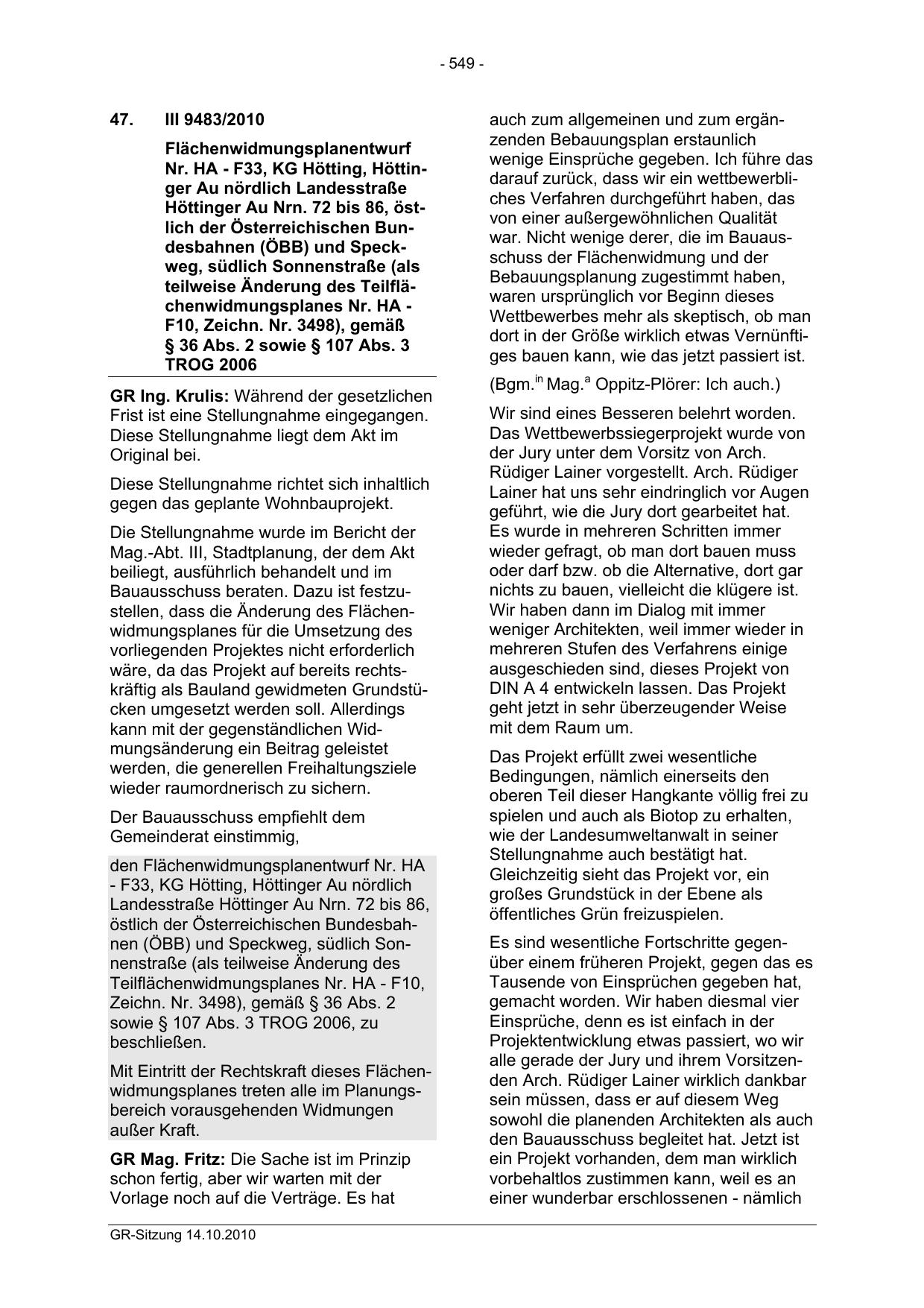 Mag.-Abt. III, Stadtplanung, der dem Akt