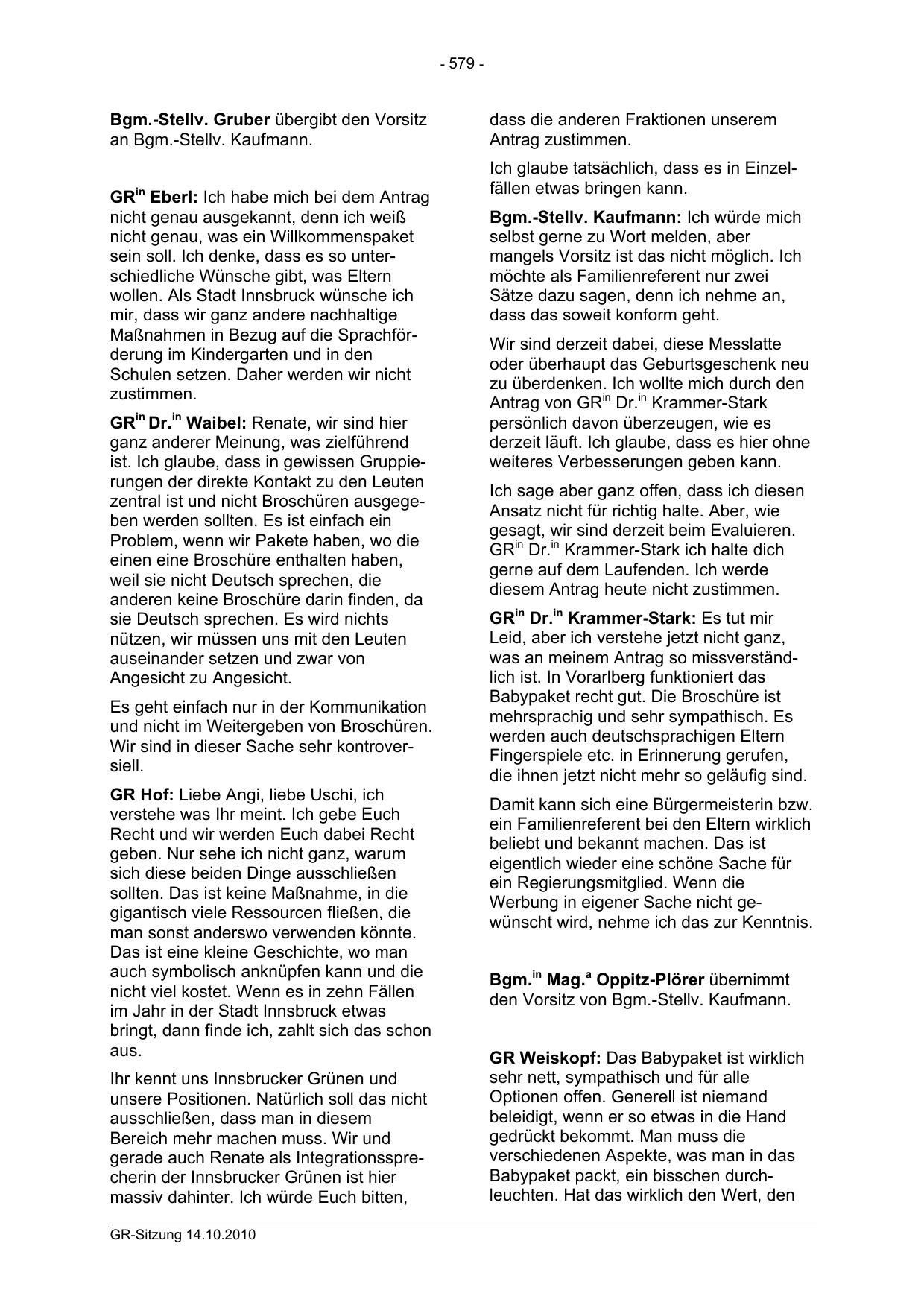 den Vorsitz von Bgm.-Stellv. Kaufmann.