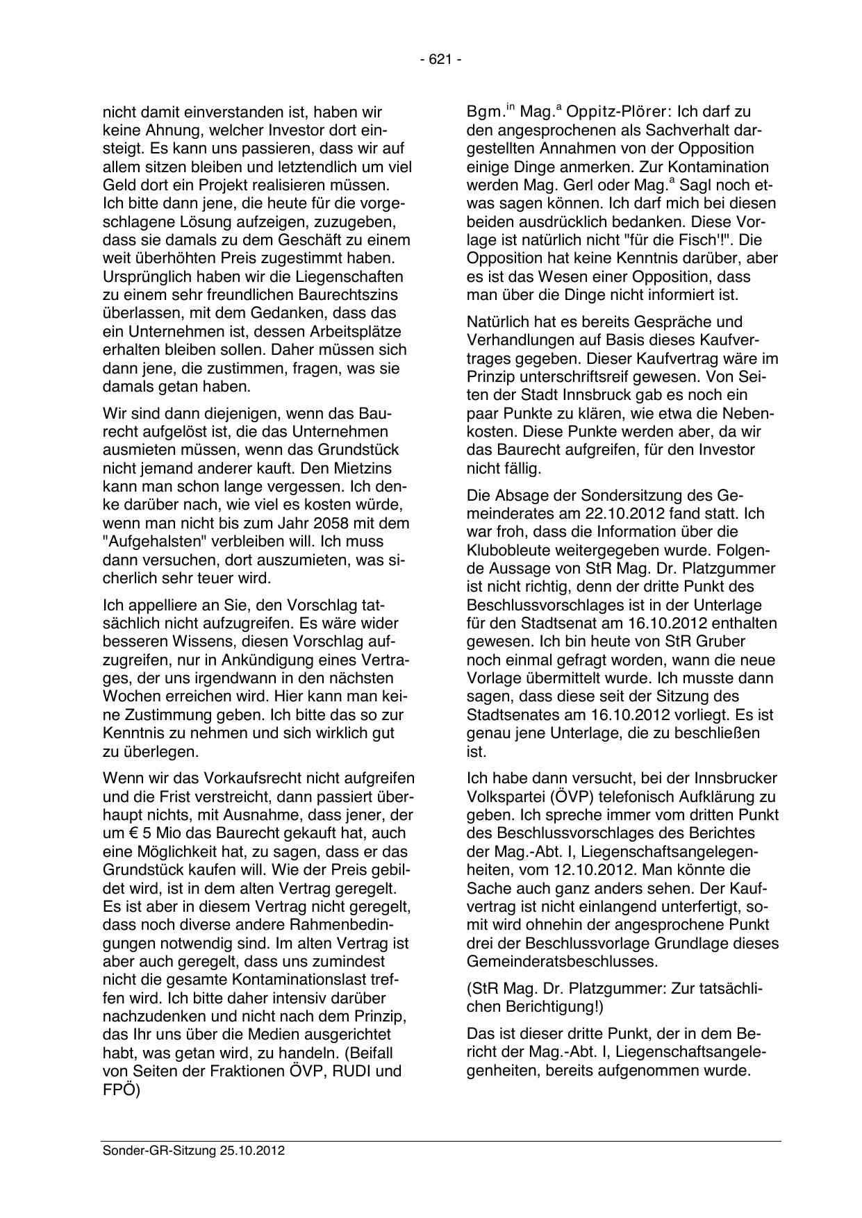 Klubobleute weitergegeben wurde. Folgende Aussage von StR Mag. Dr. Platzgummer