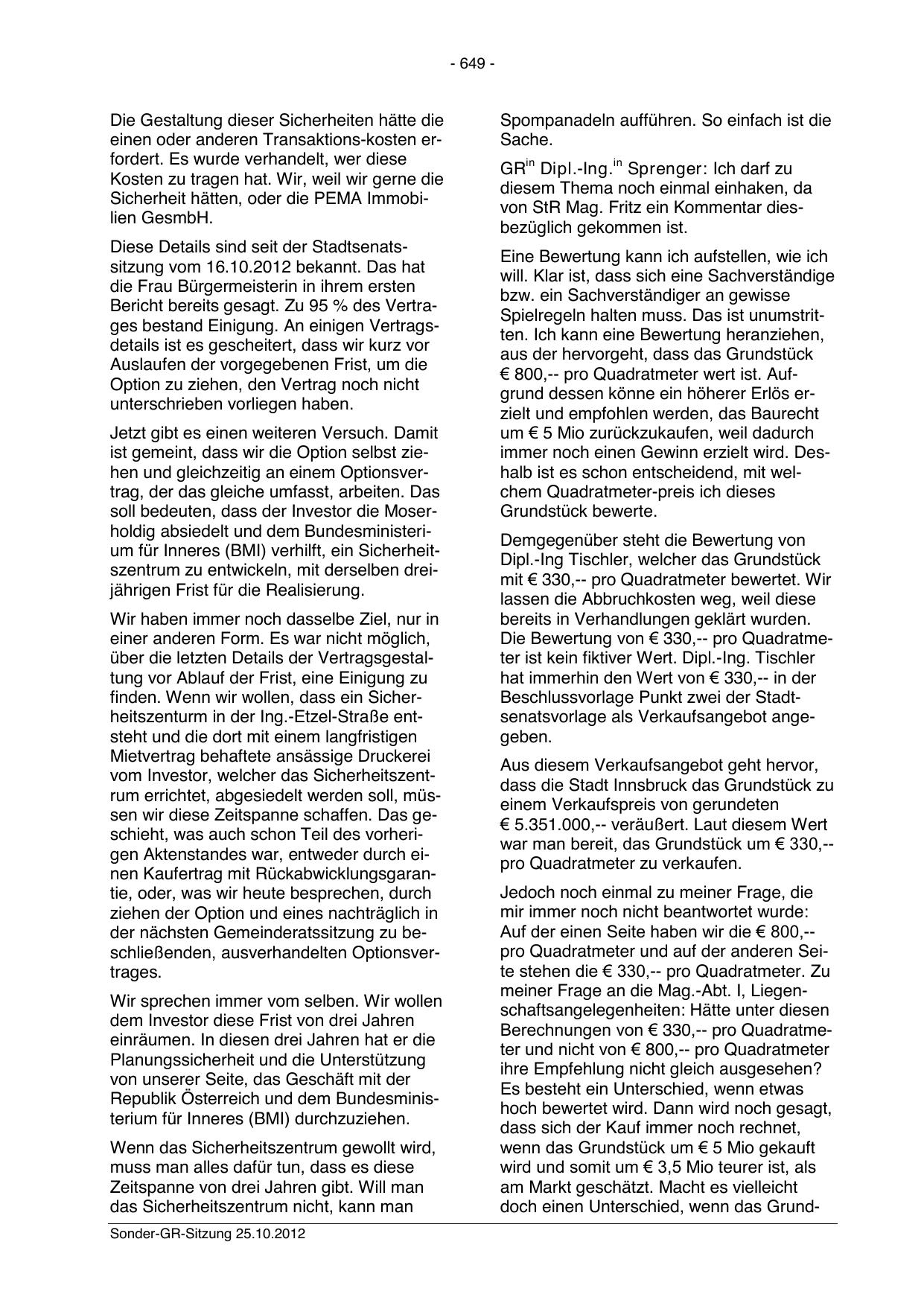vom Investor, welcher das Sicherheitszentrum errichtet, abgesiedelt werden soll, müssen wir diese Zeitspanne schaffen. Das geschieht, was auch schon Teil des vorherigen Aktenstandes war, entweder durch einen Kaufertrag mit Rückabwicklungsgarantie, oder, was wir heute besprechen, durch