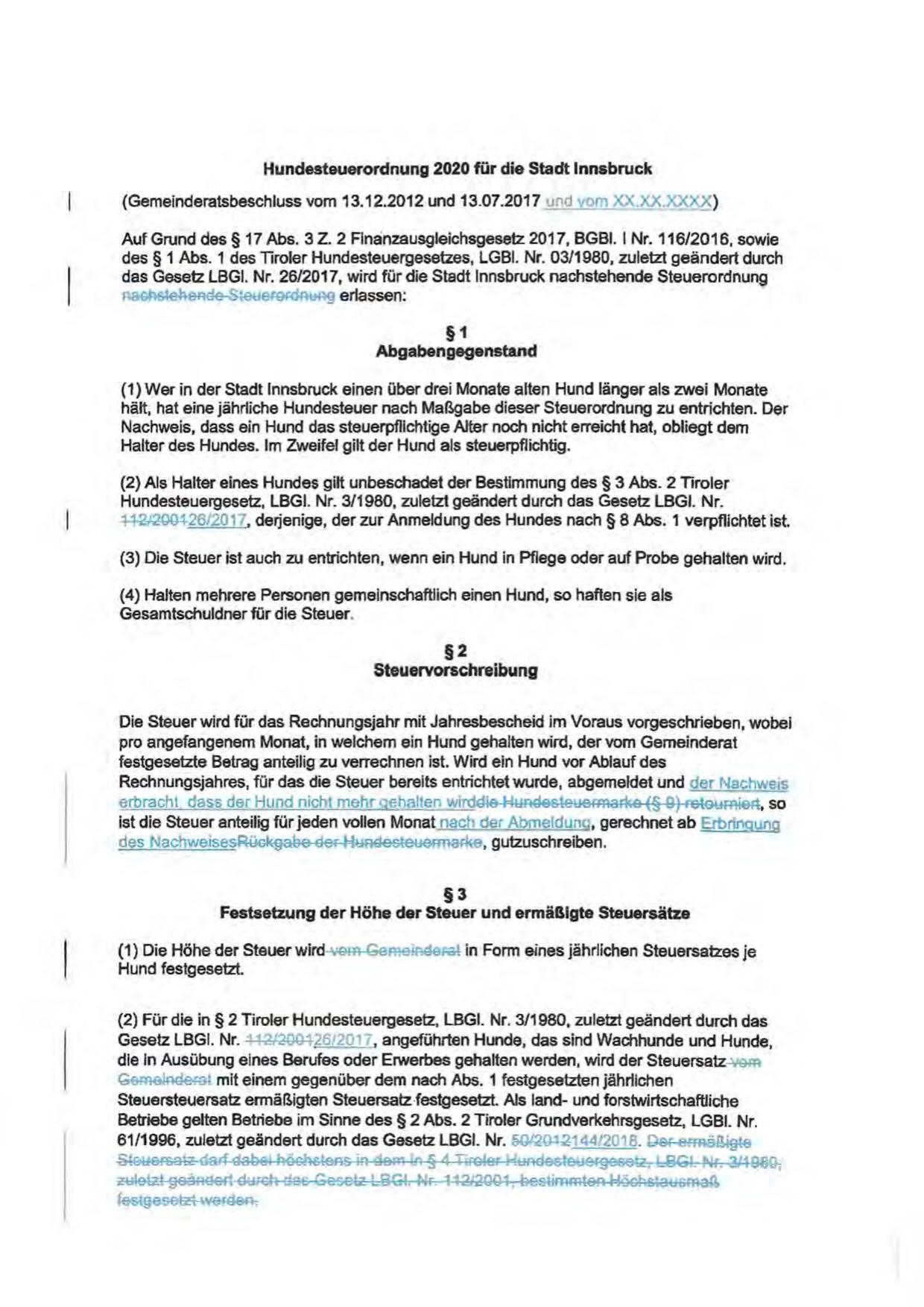 Hundesteuerordnung 2020 für die Stadt Innsbruck