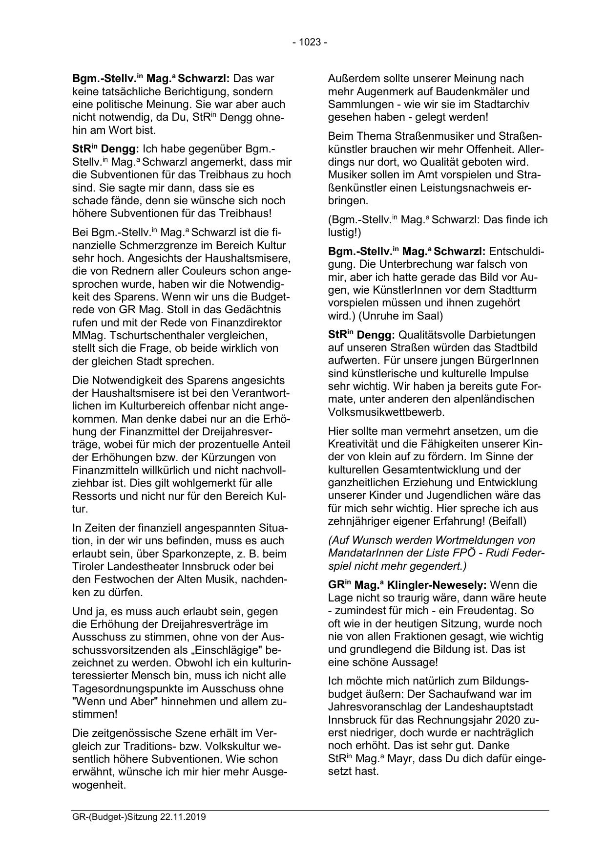 StRin Dengg: Ich habe gegenüber Bgm.Stellv.in Mag.a Schwarzl angemerkt, dass mir
