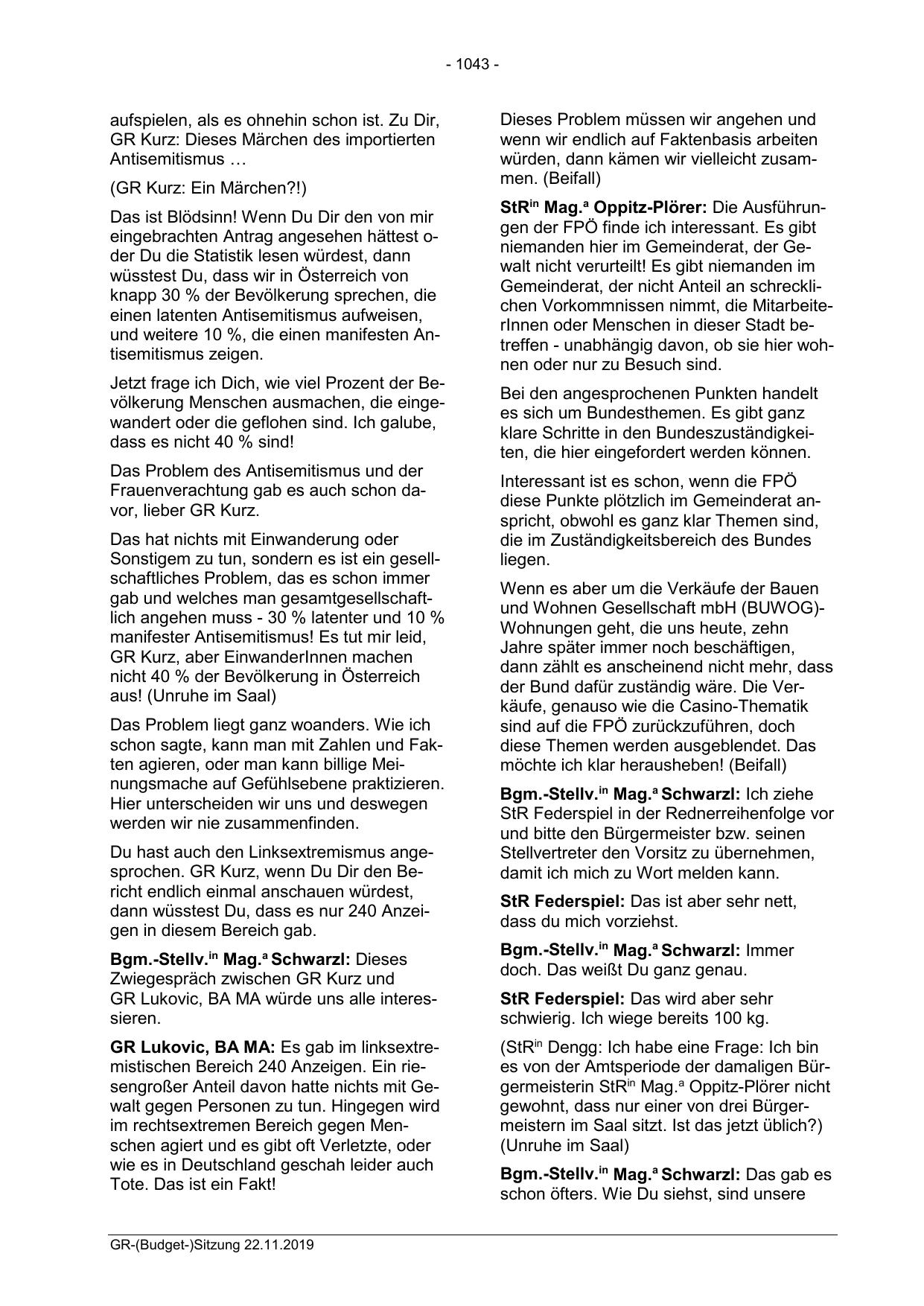 StRin Mag.a Oppitz-Plörer: Die Ausführungen der FPÖ finde ich interessant. Es gibt