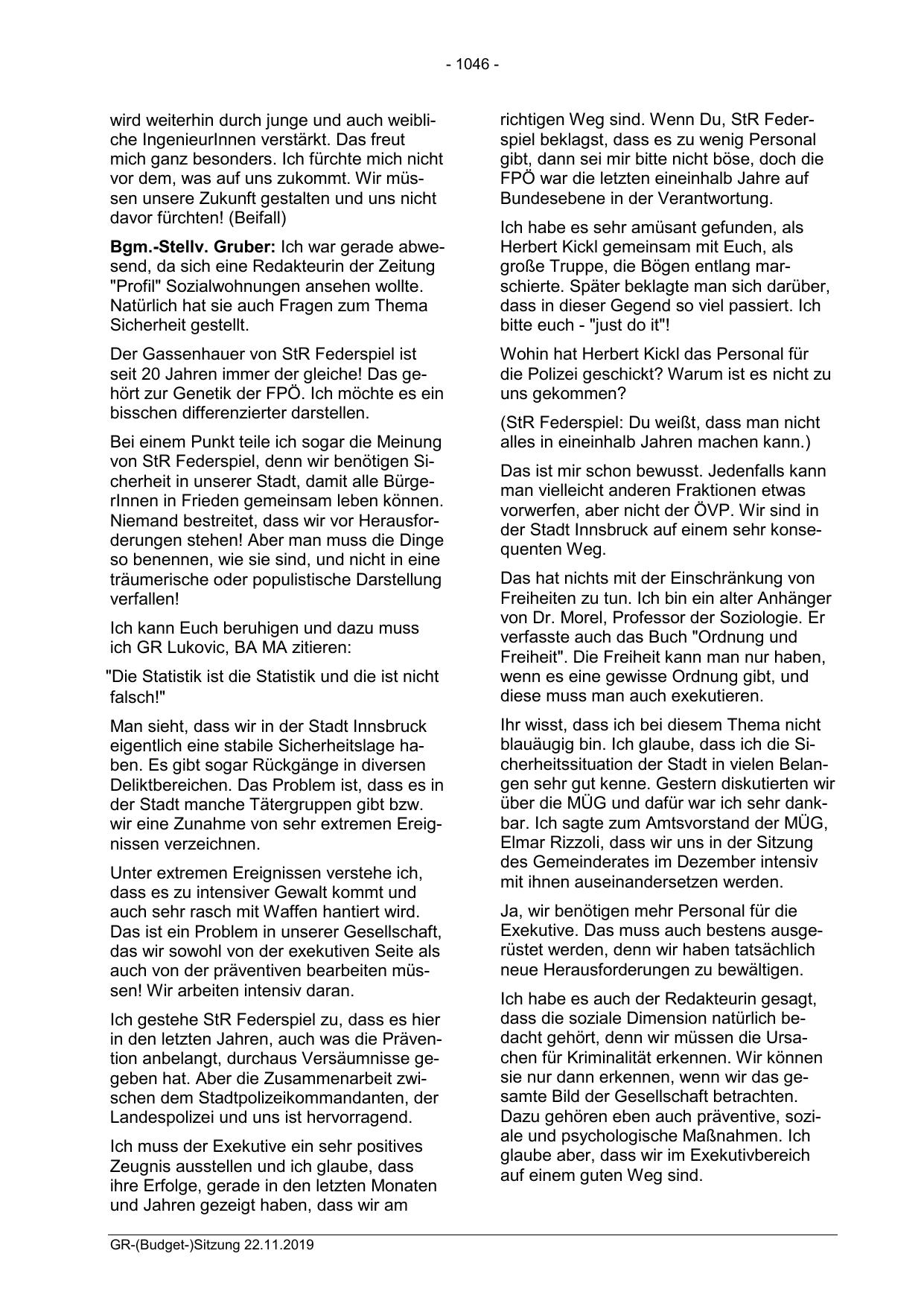 von StR Federspiel, denn wir benötigen Sicherheit in unserer Stadt, damit alle BürgerInnen in Frieden gemeinsam leben können.