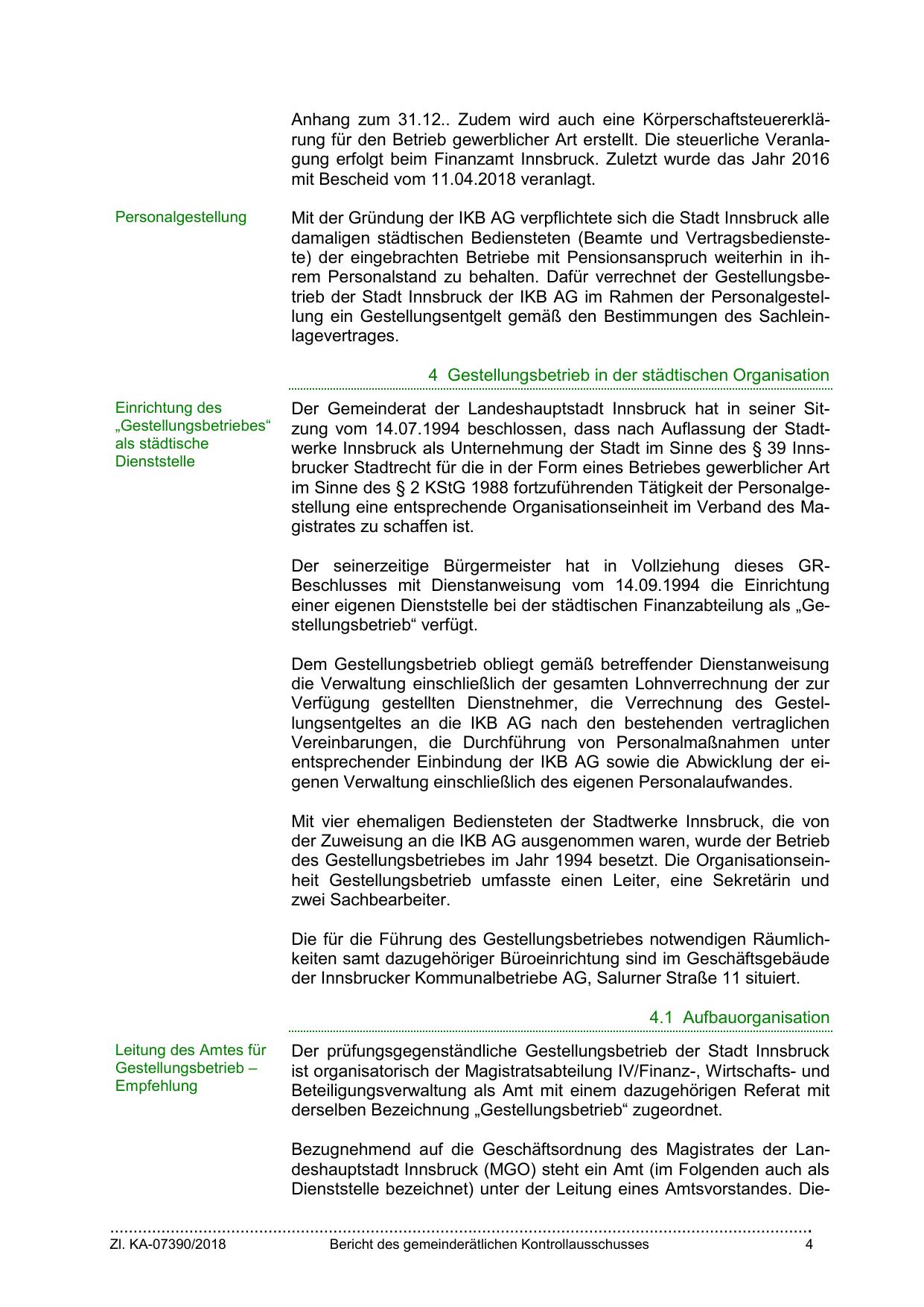 Der prüfungsgegenständliche Gestellungsbetrieb der Stadt Innsbruck