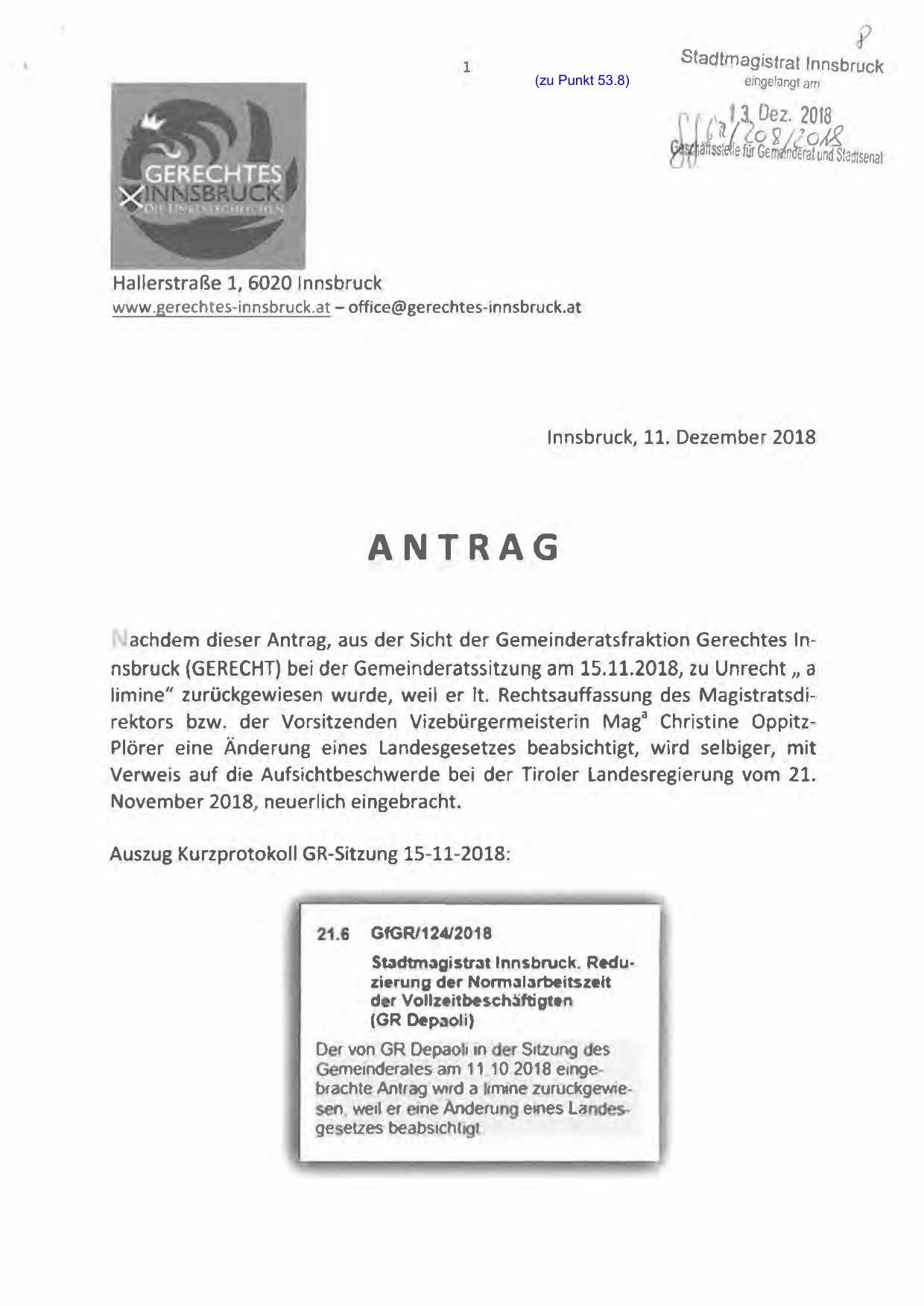 nsbruck (GERECHT) bei der Gemeinderatssitzung am 15.11.2018, zu Unrecht„ a