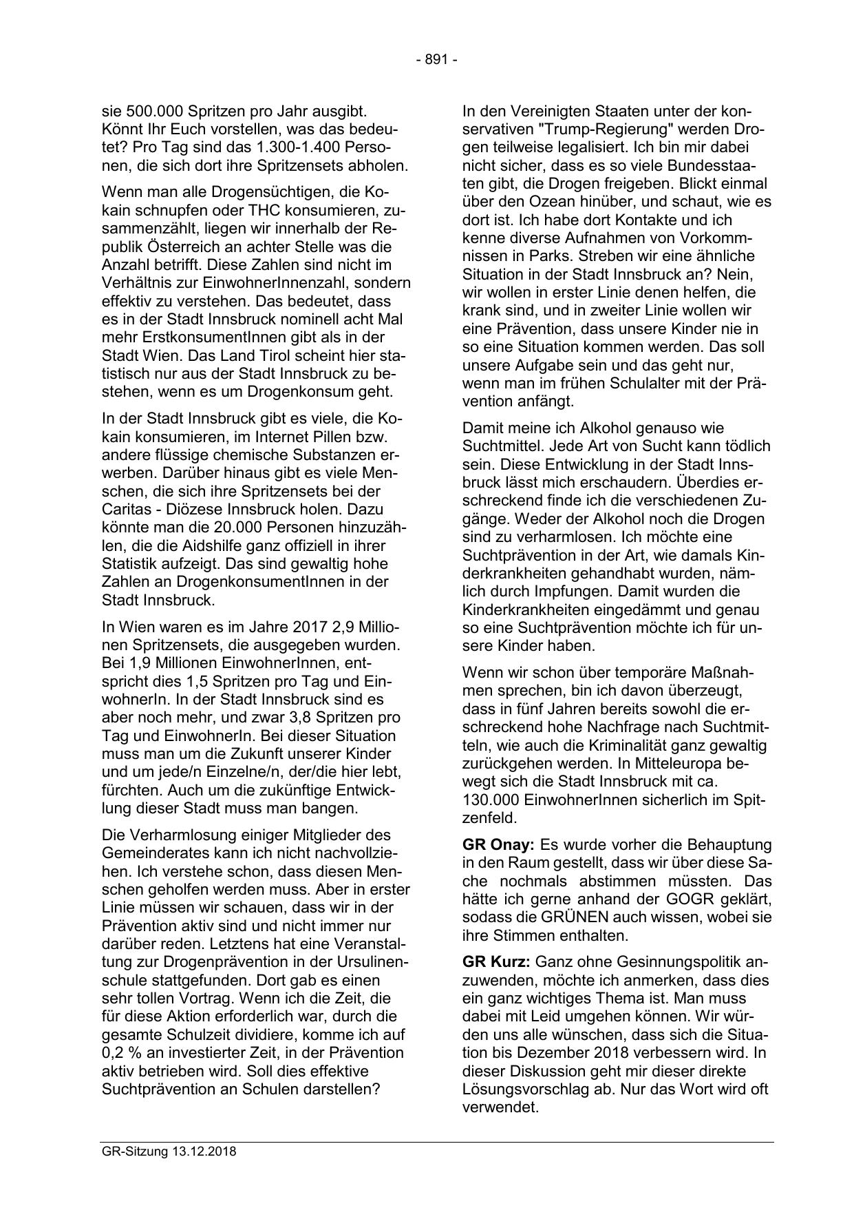 GR Kurz: Ganz ohne Gesinnungspolitik anzuwenden, möchte ich anmerken, dass dies
