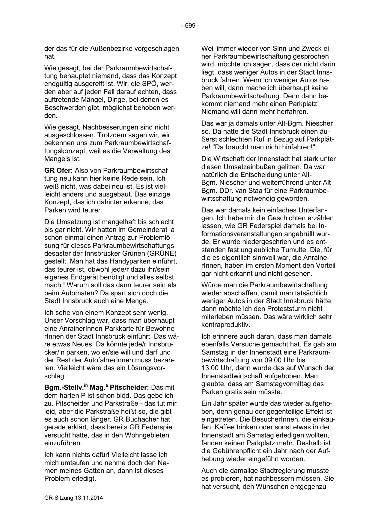 natürlich die Entscheidung unter AltBgm. Niescher und weiterführend unter AltBgm. DDr. van Staa für eine Parkraumbewirtschaftung notwendig geworden.