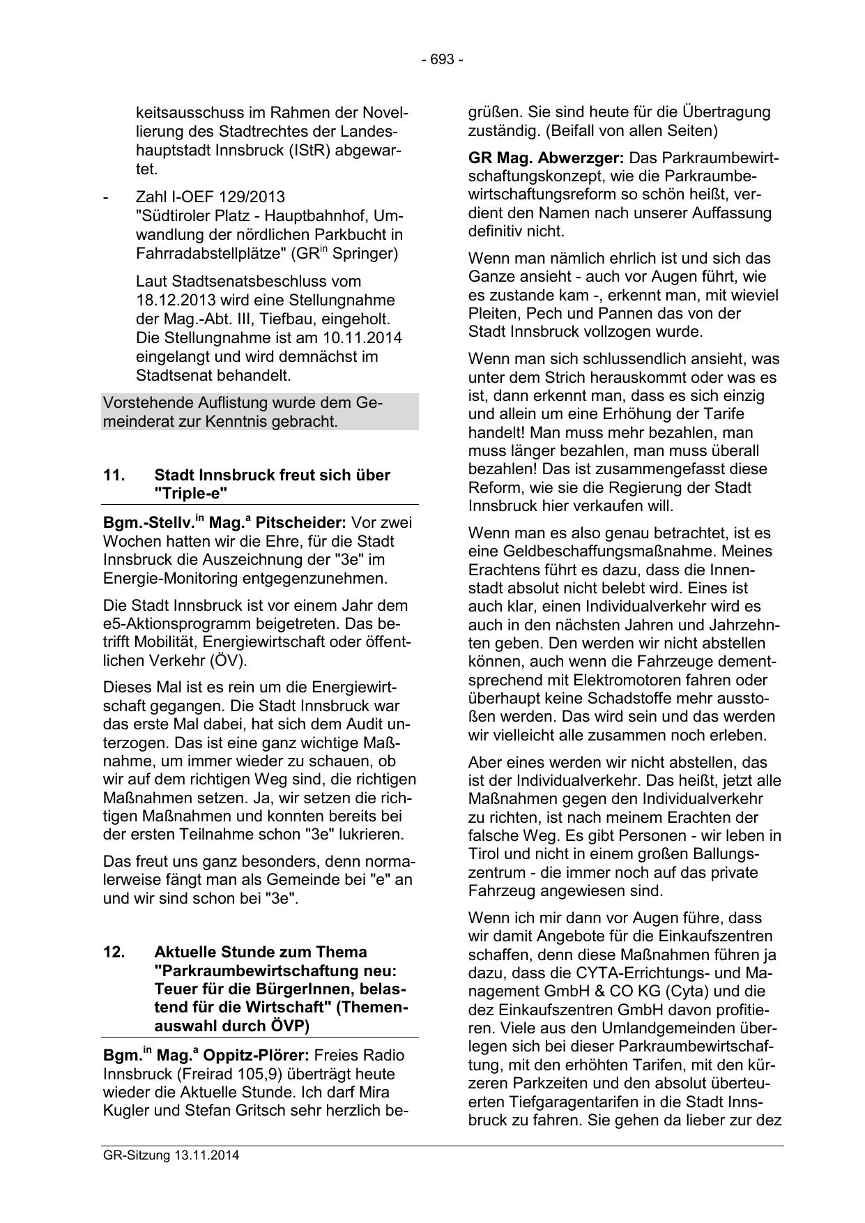 keitsausschuss im Rahmen der Novellierung des Stadtrechtes der Landeshauptstadt Innsbruck (IStR) abgewartet.