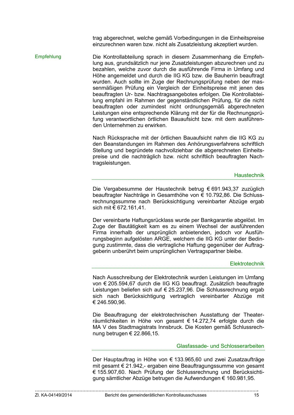 wurden. Auch sollte im Zuge der Rechnungsprüfung neben der massenmäßigen Prüfung ein Vergleich der Einheitspreise mit jenen des