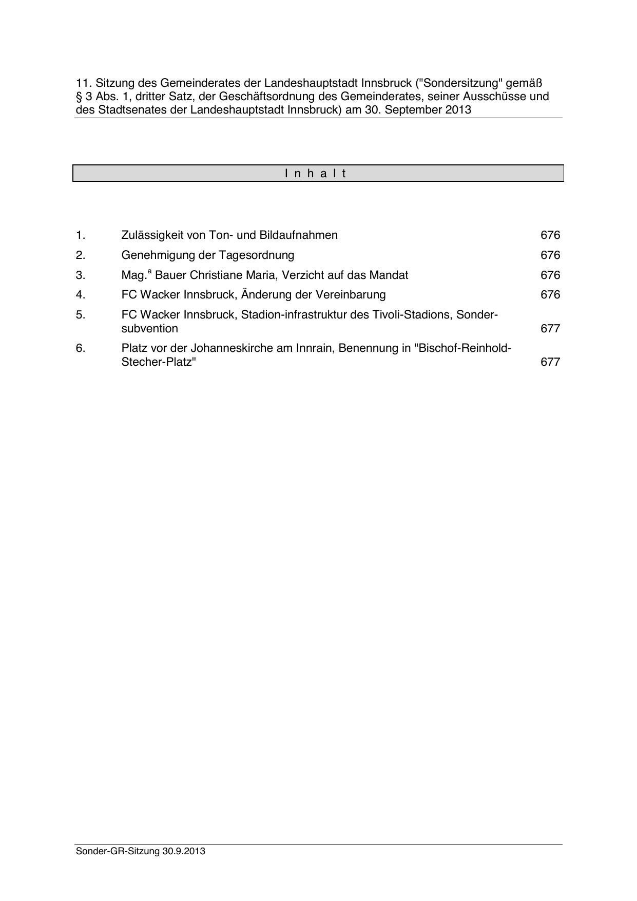 des Stadtsenates der Landeshauptstadt Innsbruck) am 30. September 2013