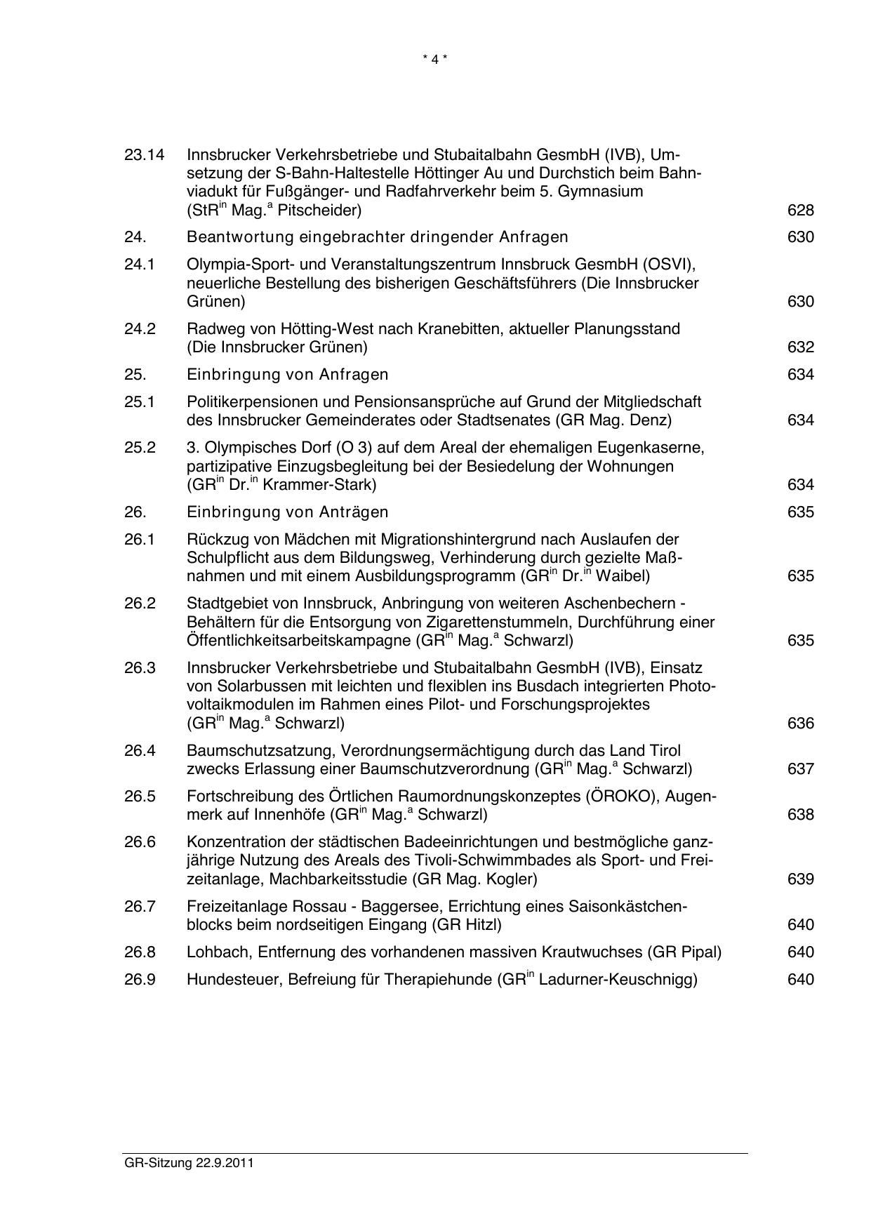 des Innsbrucker Gemeinderates oder Stadtsenates (GR Mag. Denz)