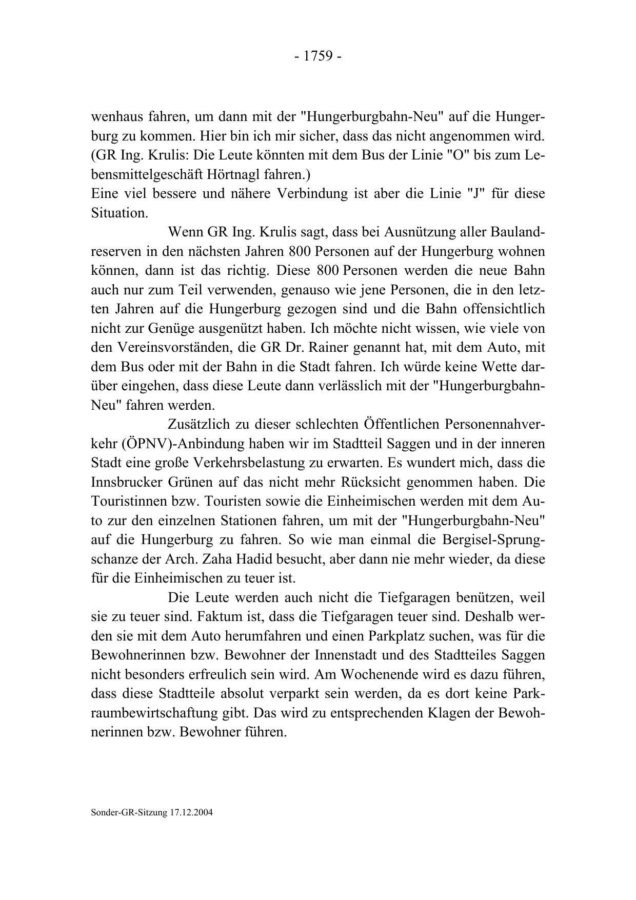 Wenn GR Ing. Krulis sagt, dass bei Ausnützung aller Baulandreserven in den nächsten Jahren 800 Personen auf der Hungerburg wohnen