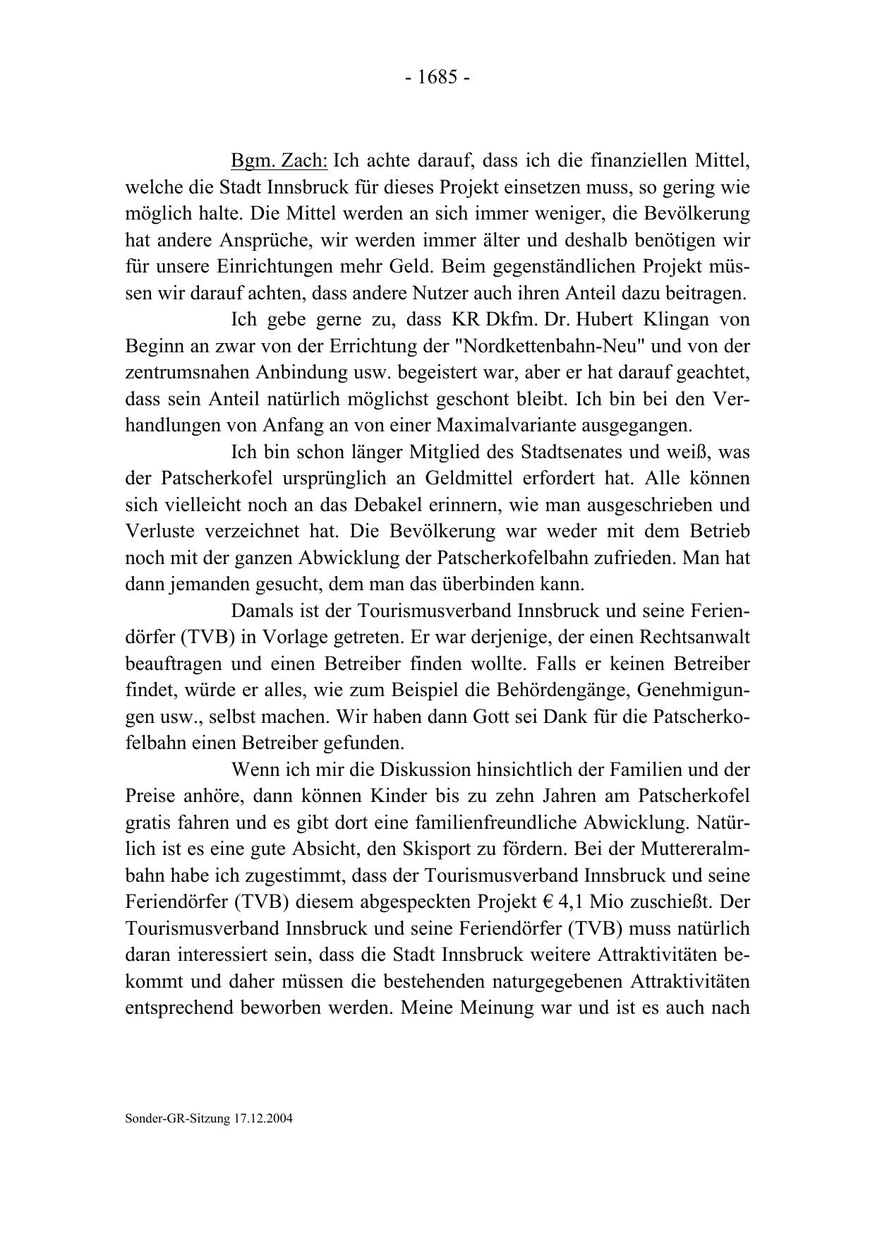 findet, würde er alles, wie zum Beispiel die Behördengänge, Genehmigungen usw., selbst machen. Wir haben dann Gott sei Dank für die Patscherkofelbahn einen Betreiber gefunden.