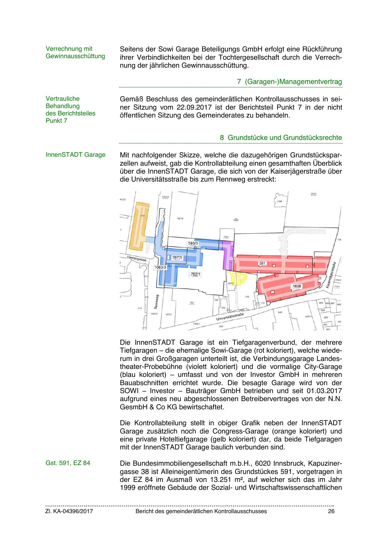 Gemäß Beschluss des gemeinderätlichen Kontrollausschusses in seiner Sitzung vom 22.09.2017 ist der Berichtsteil Punkt 7 in der nicht