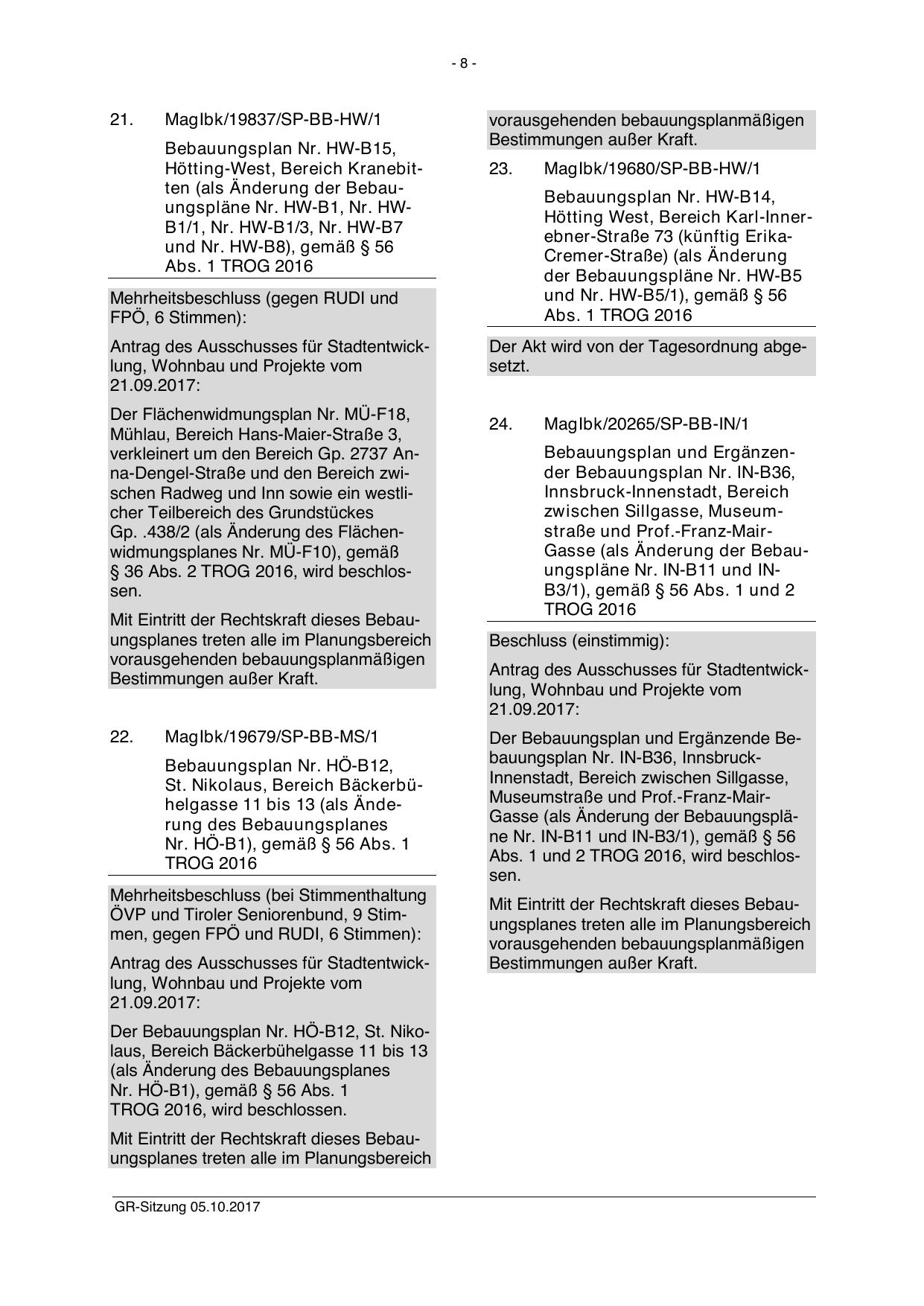 § 36 Abs. 2 TROG 2016, wird beschlossen.