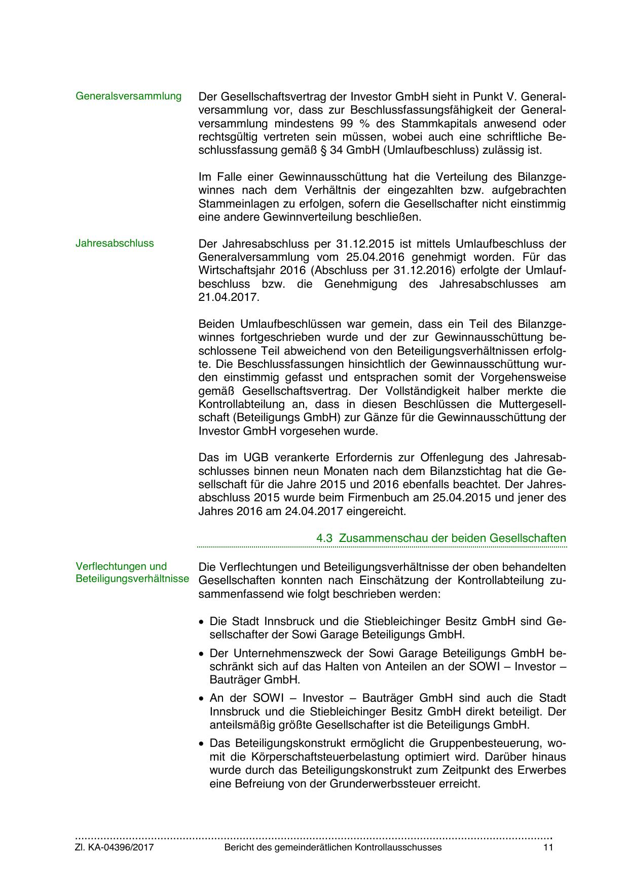 Die Stadt Innsbruck und die Stiebleichinger Besitz GmbH sind Gesellschafter der Sowi Garage Beteiligungs GmbH.
