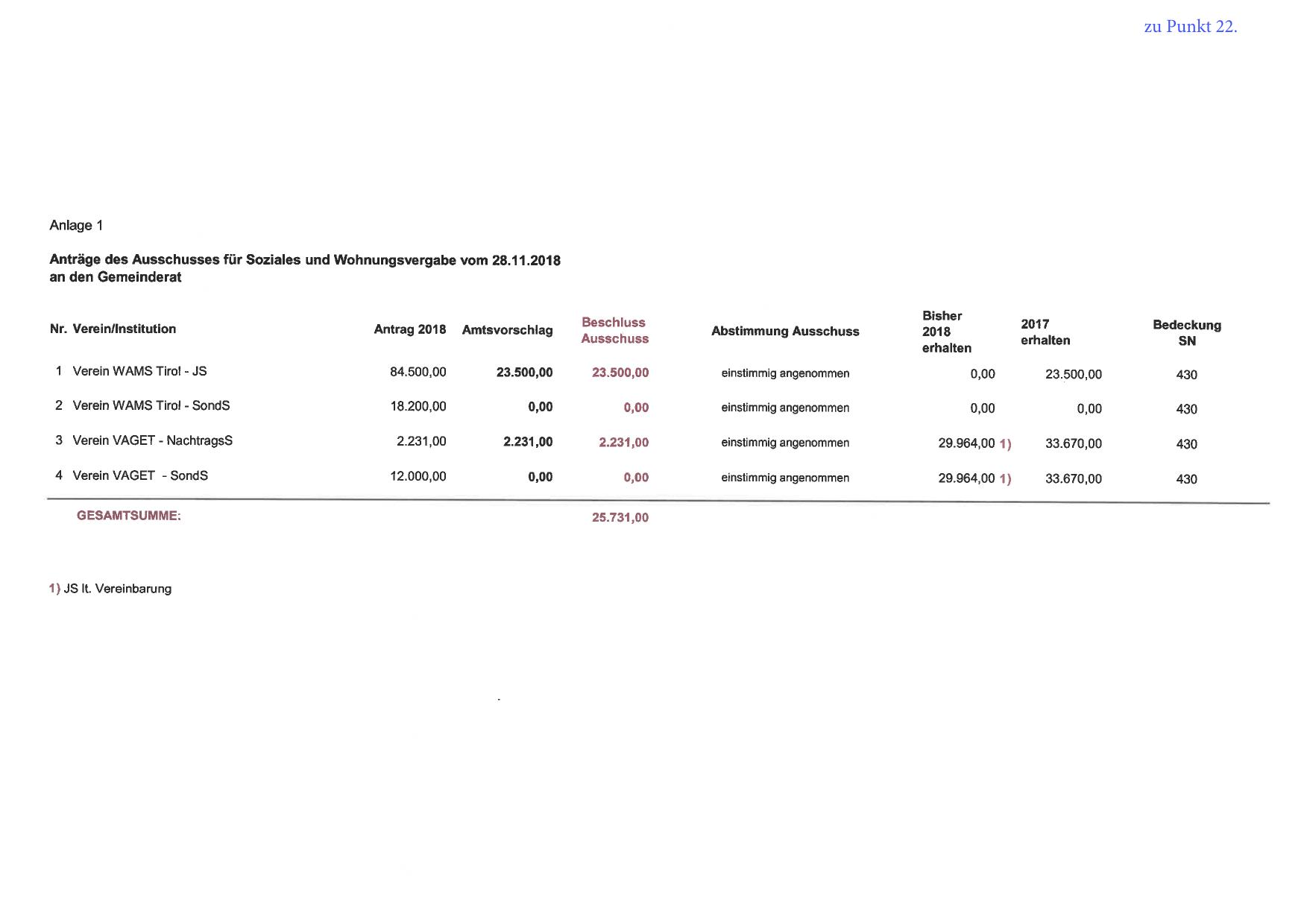 Anträge des Ausschusses für Soziales und Wohnungsvergabe vom 28.11.2018