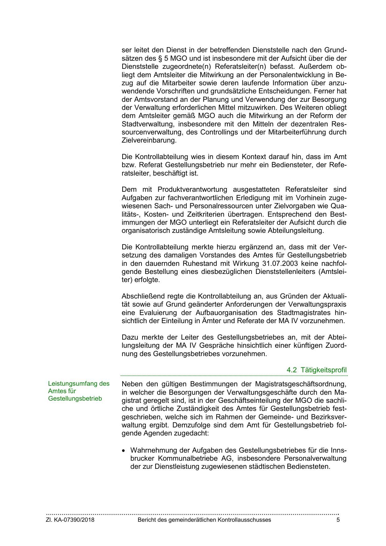 Aufgaben zur fachverantwortlichen Erledigung mit im Vorhinein zugewiesenen Sach- und Personalressourcen unter Zielvorgaben wie Qualitäts-, Kosten- und Zeitkriterien übertragen. Entsprechend den Bestimmungen der MGO unterliegt ein Referatsleiter der Aufsicht durch die