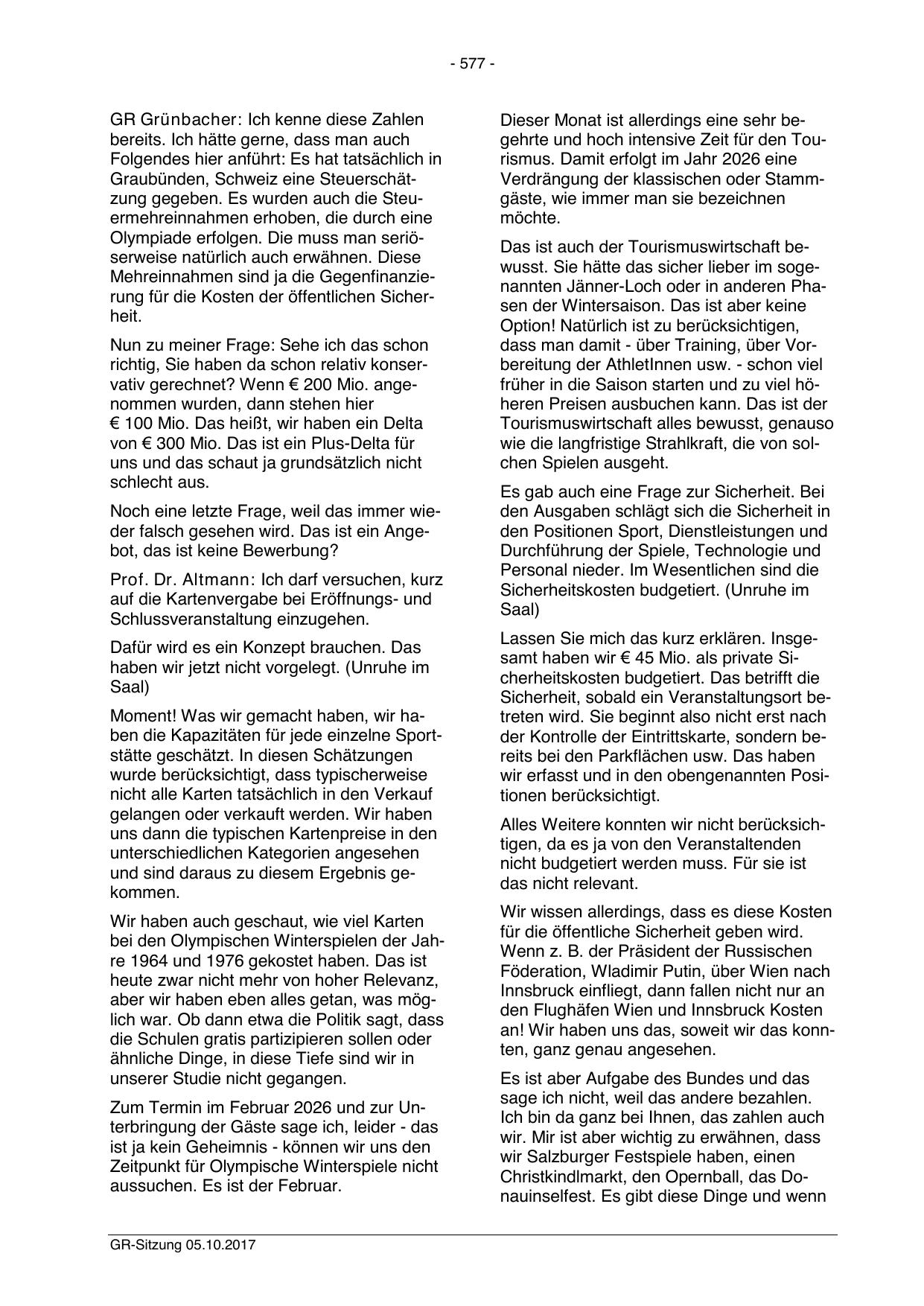 Lassen Sie mich das kurz erklären. Insgesamt haben wir € 45 Mio. als private Sicherheitskosten budgetiert. Das betrifft die