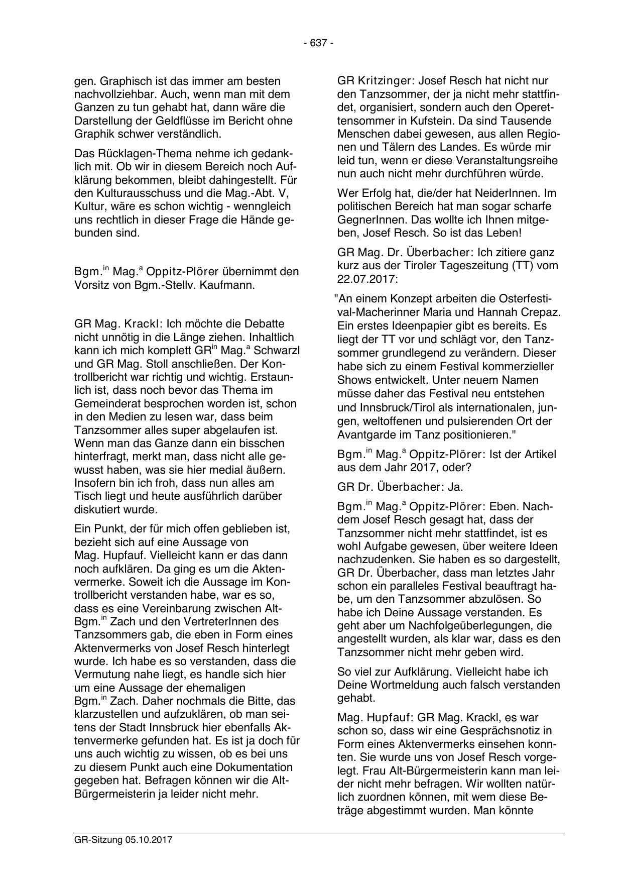 Bgm.in Mag.a Oppitz-Plörer: Eben. Nachdem Josef Resch gesagt hat, dass der