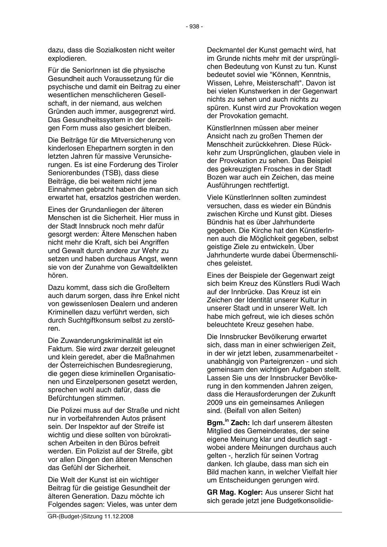 GR-(Budget-)Sitzung 11.12.2008