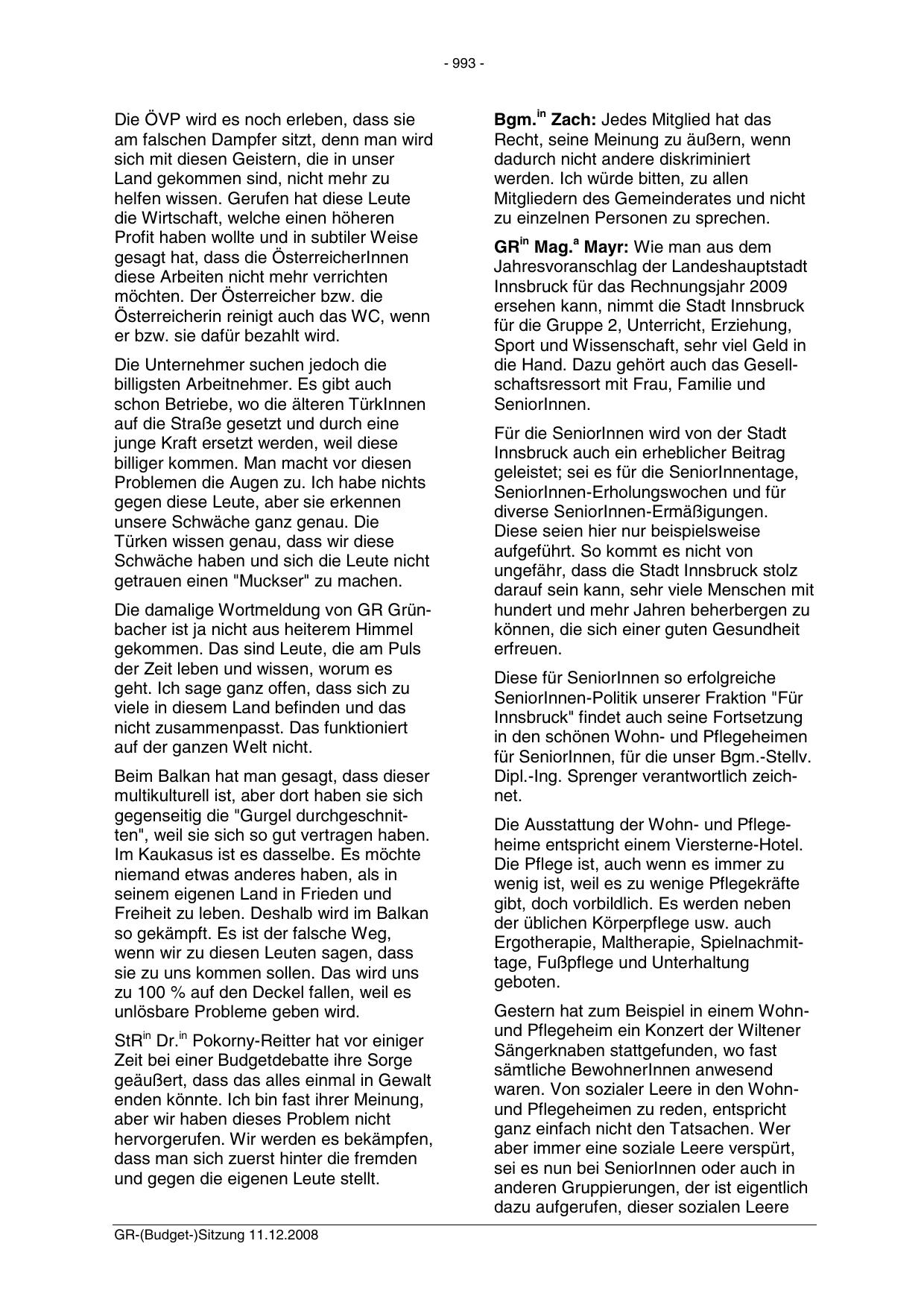 Die damalige Wortmeldung von GR Grünbacher ist ja nicht aus heiterem Himmel