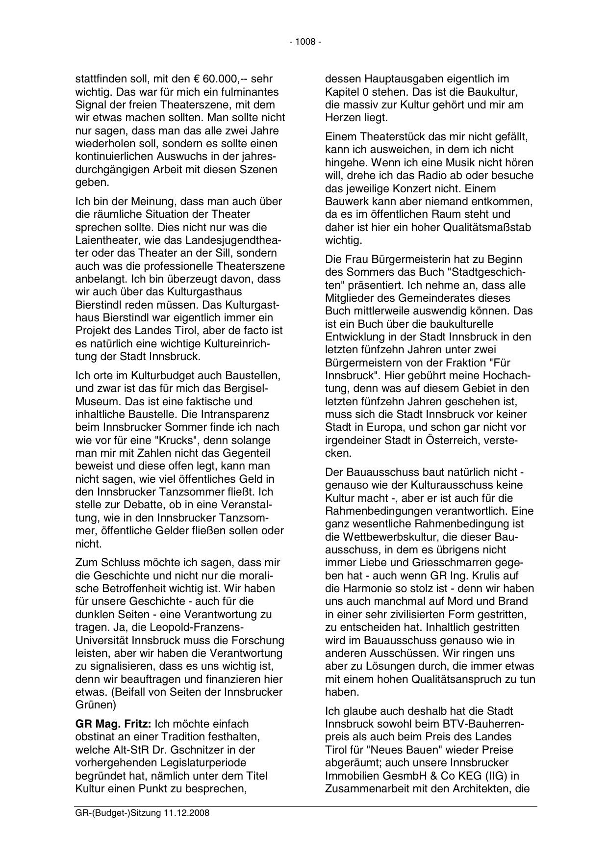 GR-(Budget-)Sitzung 11.12.2008