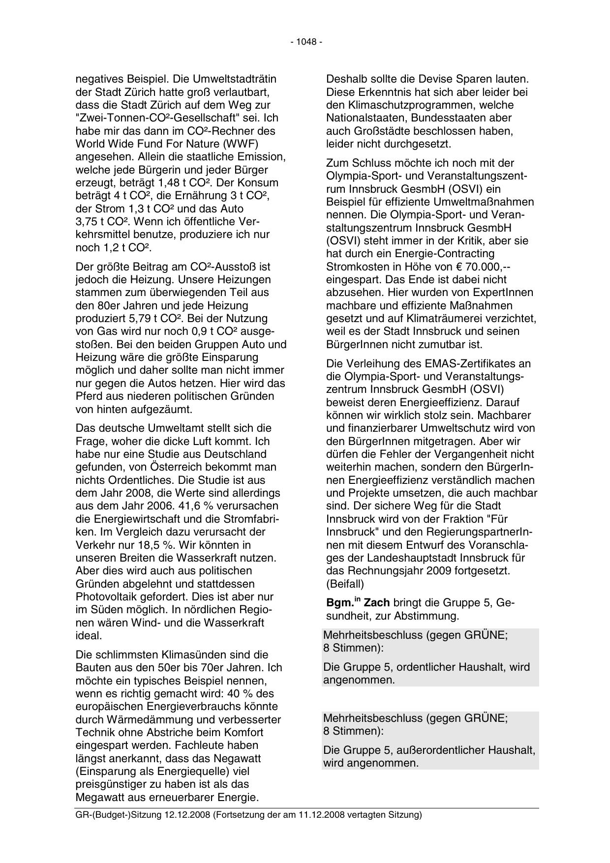 GR-(Budget-)Sitzung 12.12.2008 (Fortsetzung der am 11.12.2008 vertagten Sitzung)