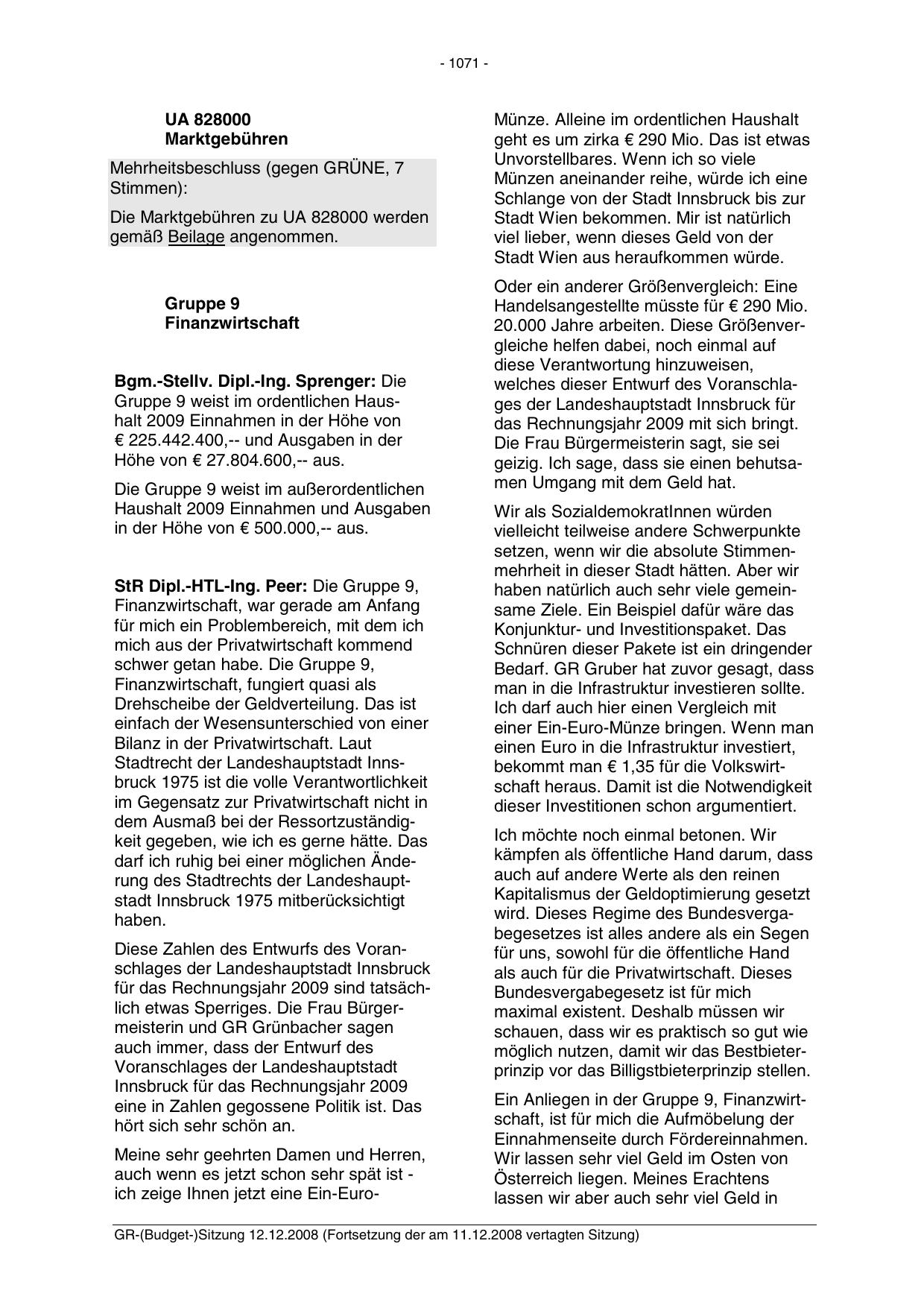GR-(Budget-)Sitzung 12.12.2008 (Fortsetzung der am 11.12.2008 vertagten Sitzung)
