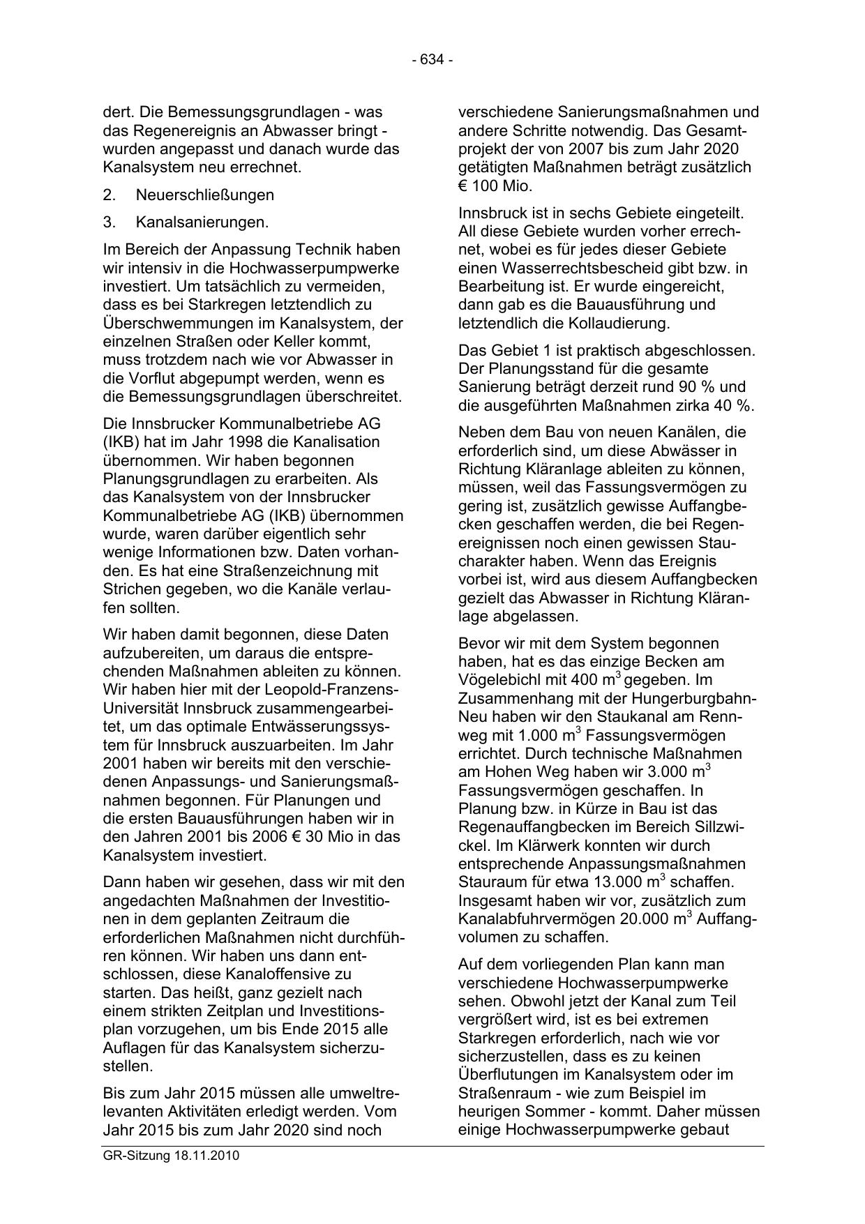 Wir haben hier mit der Leopold-FranzensUniversität Innsbruck zusammengearbeitet, um das optimale Entwässerungssystem für Innsbruck auszuarbeiten. Im Jahr