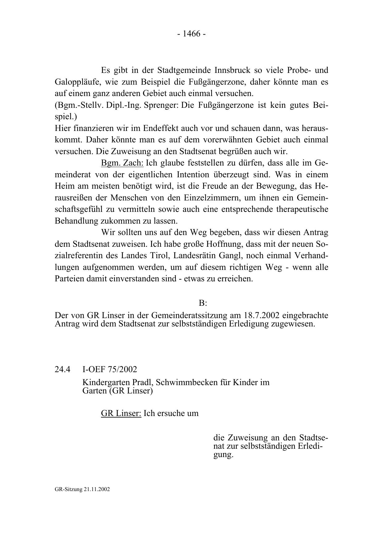Der von GR Linser in der Gemeinderatssitzung am 18.7.2002 eingebrachte