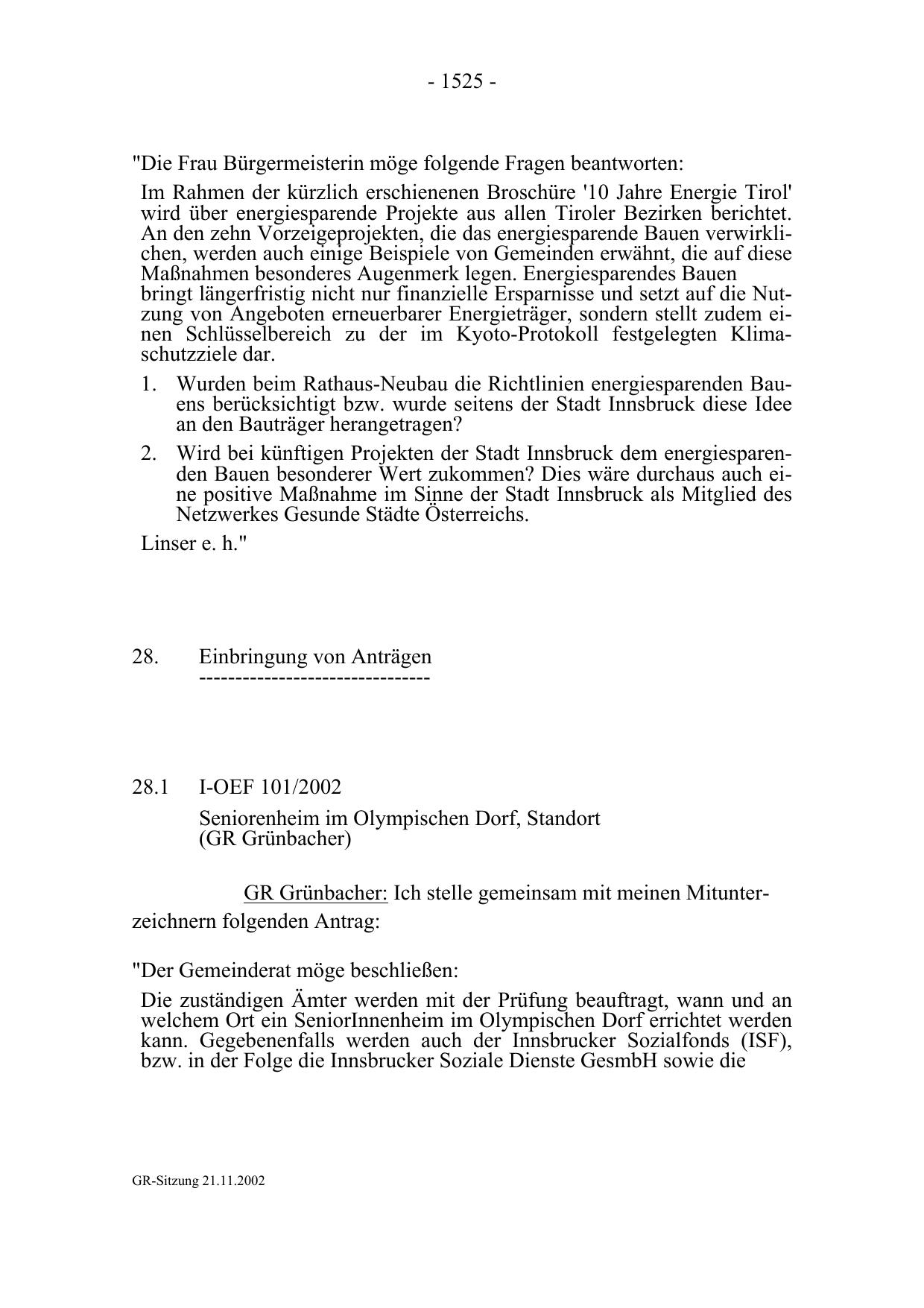 GR Grünbacher: Ich stelle gemeinsam mit meinen Mitunterzeichnern folgenden Antrag: