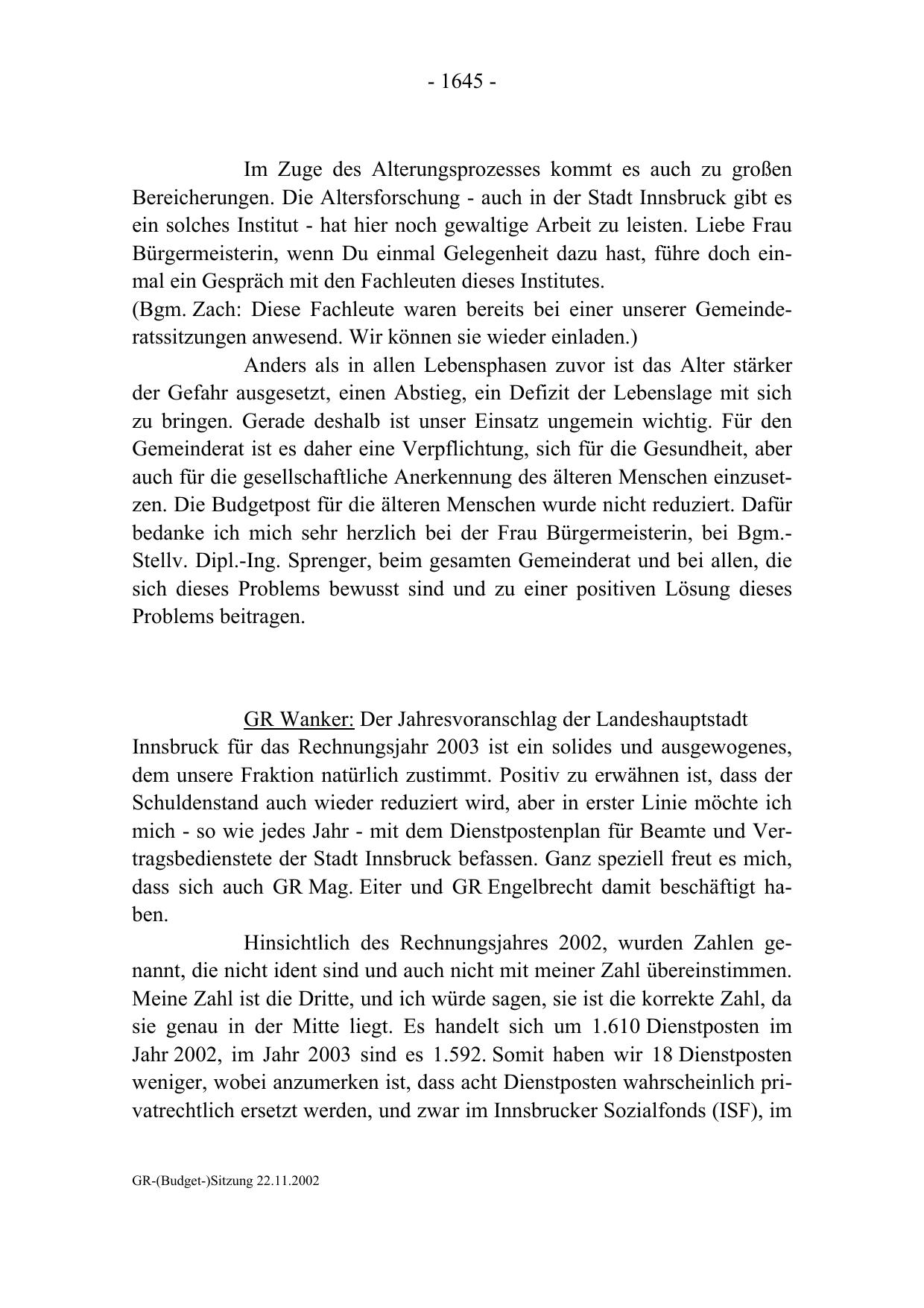 mich - so wie jedes Jahr - mit dem Dienstpostenplan für Beamte und Vertragsbedienstete der Stadt Innsbruck befassen. Ganz speziell freut es mich,