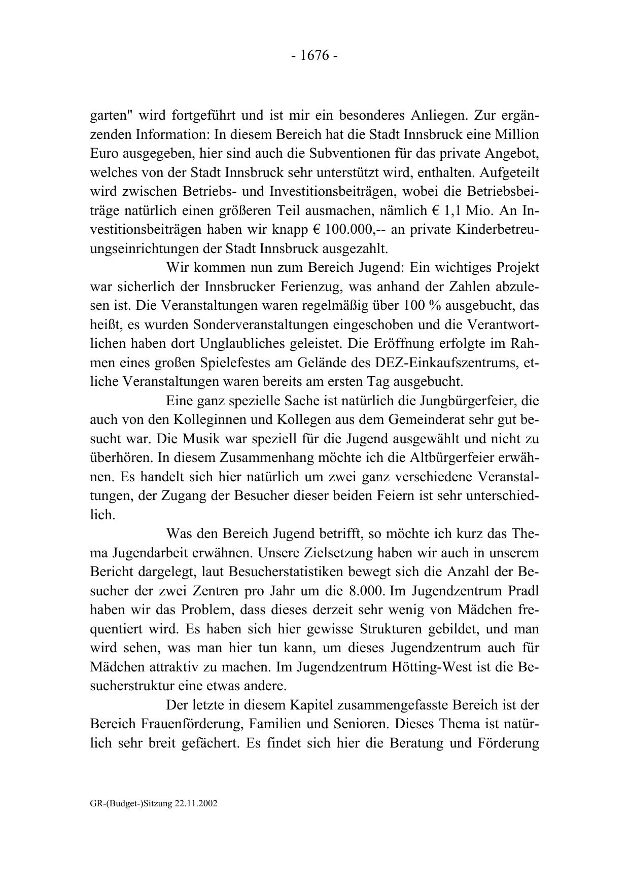 garten" wird fortgeführt und ist mir ein besonderes Anliegen. Zur ergänzenden Information: In diesem Bereich hat die Stadt Innsbruck eine Million