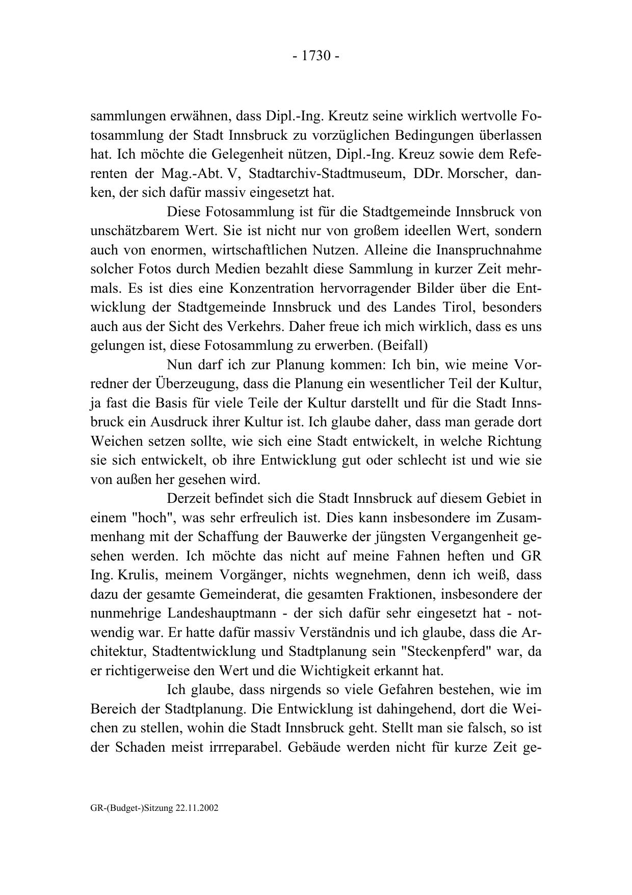 ja fast die Basis für viele Teile der Kultur darstellt und für die Stadt Innsbruck ein Ausdruck ihrer Kultur ist. Ich glaube daher, dass man gerade dort