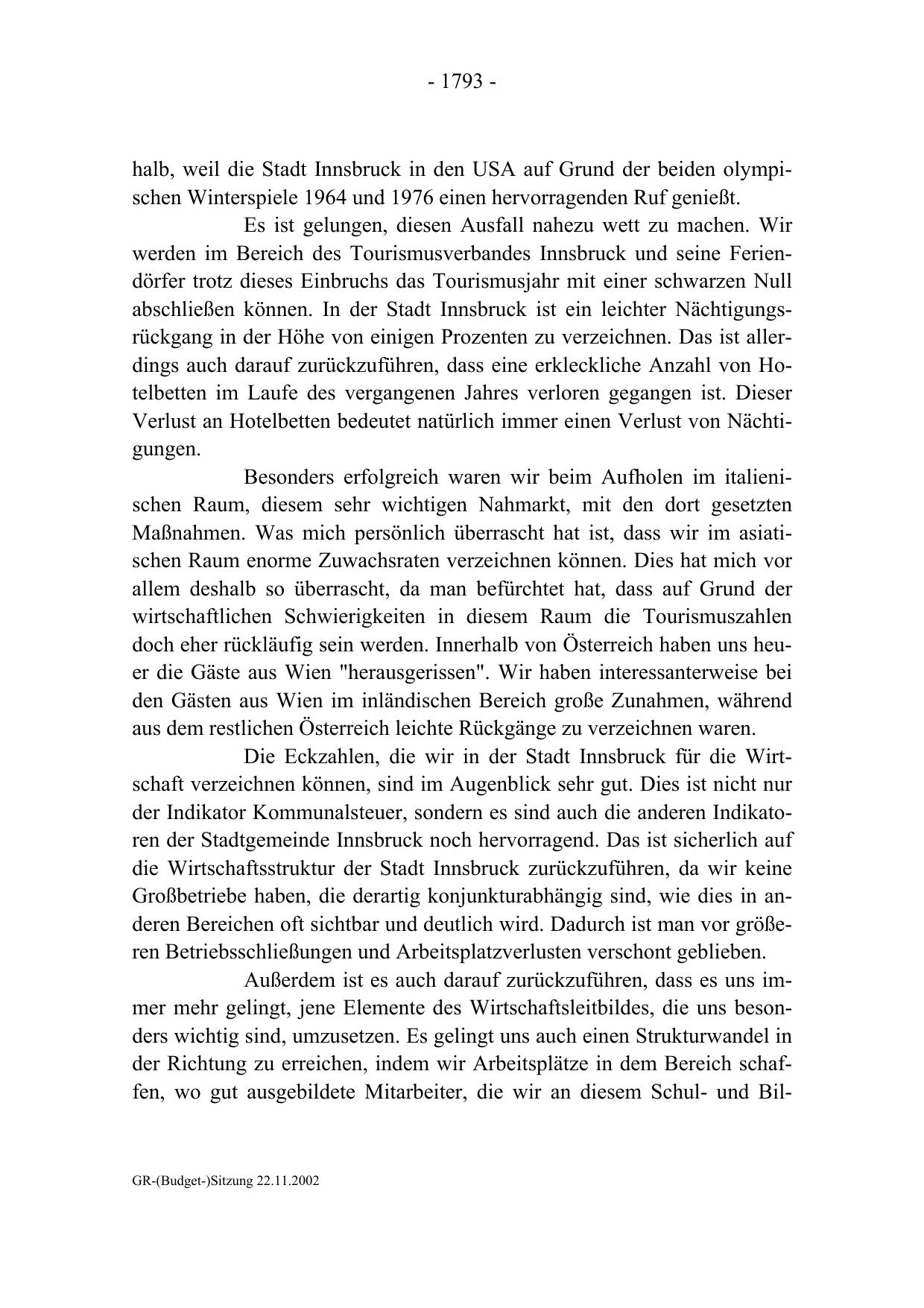 abschließen können. In der Stadt Innsbruck ist ein leichter Nächtigungsrückgang in der Höhe von einigen Prozenten zu verzeichnen. Das ist allerdings auch darauf zurückzuführen, dass eine erkleckliche Anzahl von Hotelbetten im Laufe des vergangenen Jahres verloren gegangen ist. Dieser