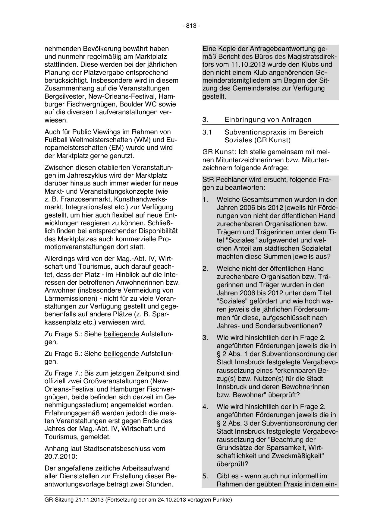 GR-Sitzung 21.11.2013 (Fortsetzung der am 24.10.2013 vertagten Punkte)