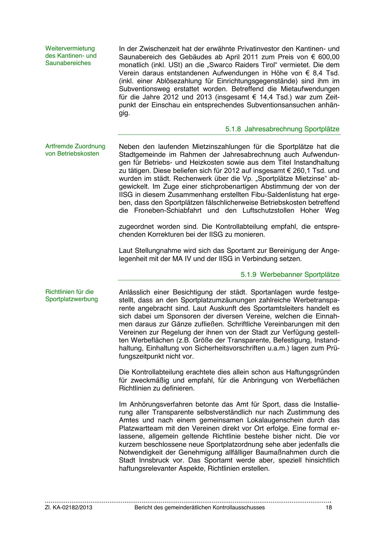 Stadt Innsbruck vor. Das Sportamt werde aber, speziell hinsichtlich